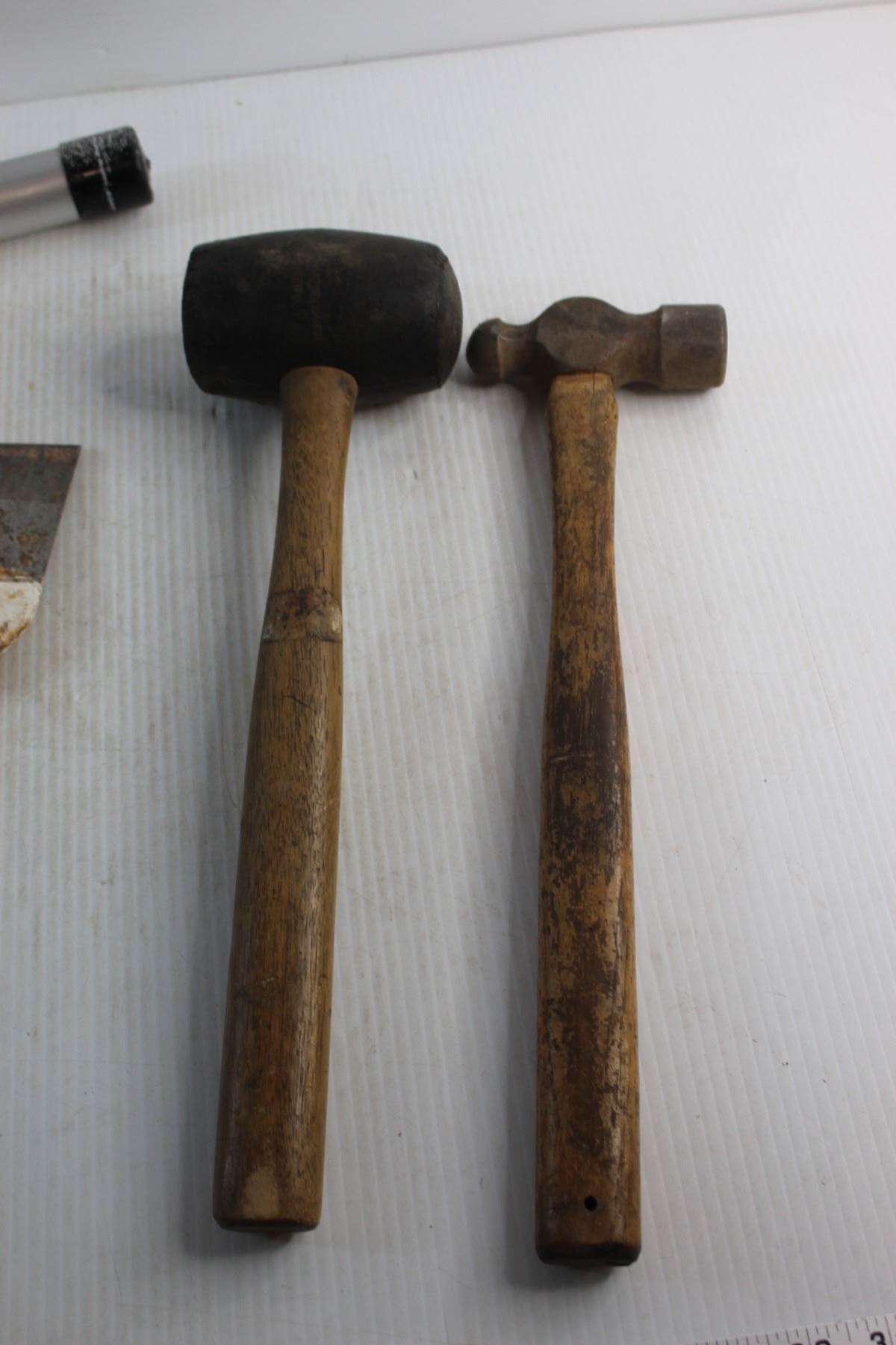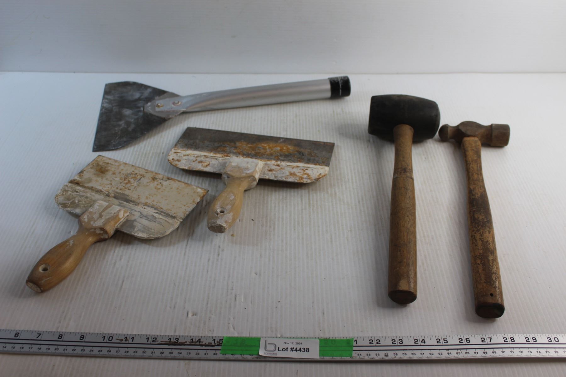 (3) Drywall Mud Knives, Ball Peen Hammer and Rubber Mallet