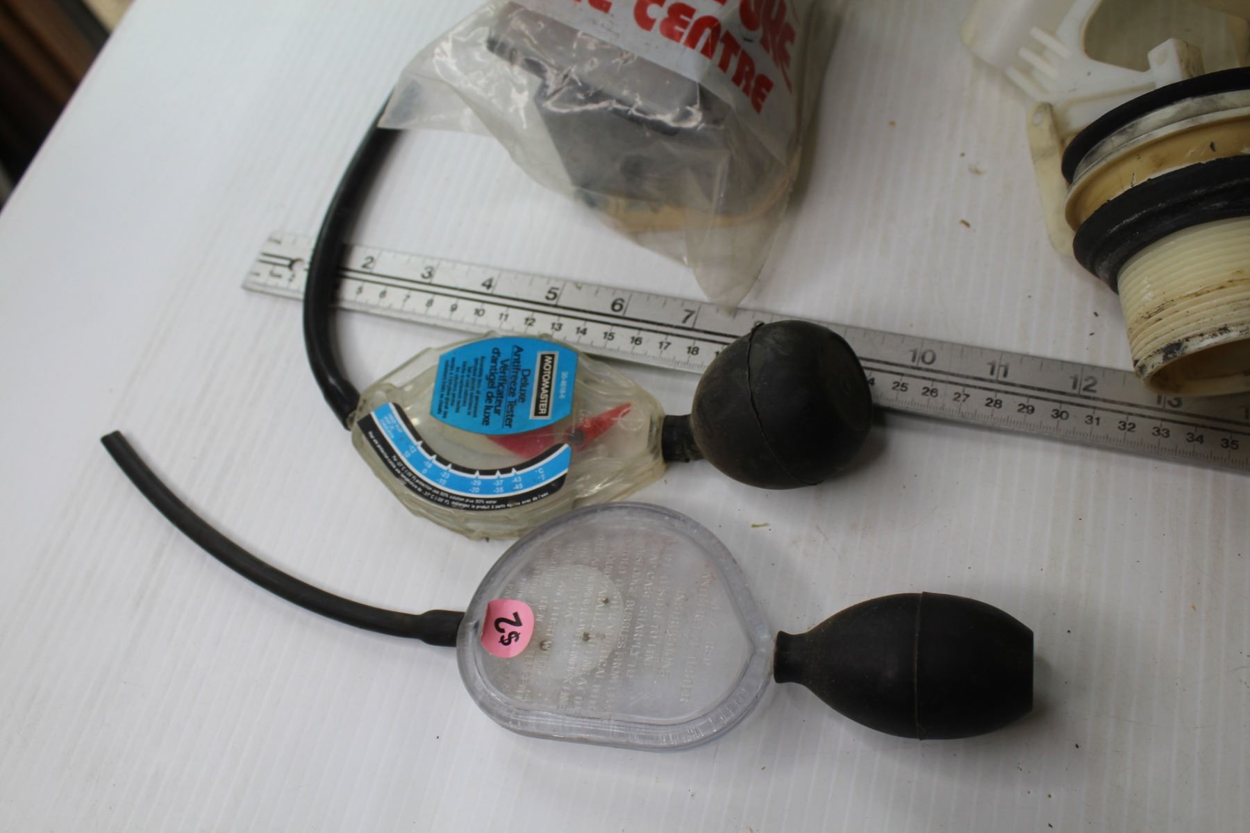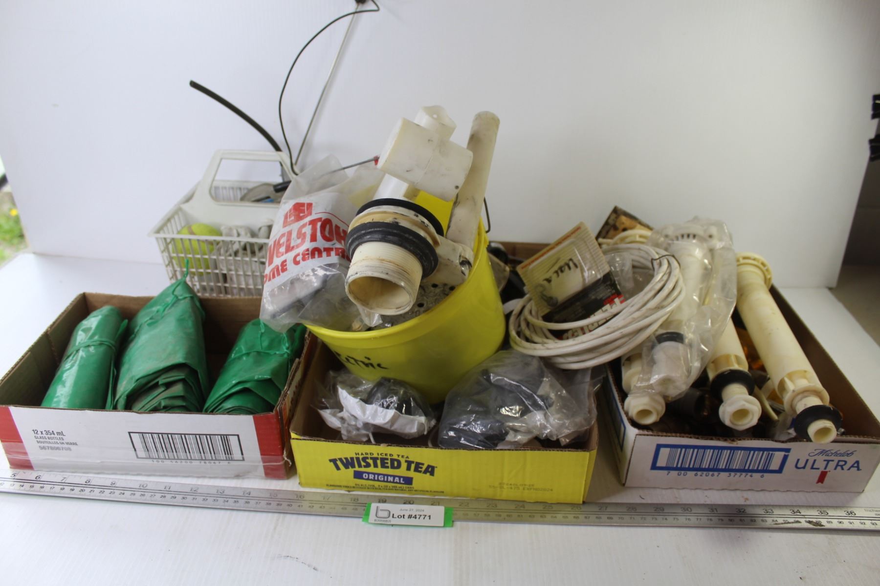 (3) Eaves Trough Plastic Water Lines/Bags - Plumbing Items - Electrical Items - Battery Testers - Misc. Items