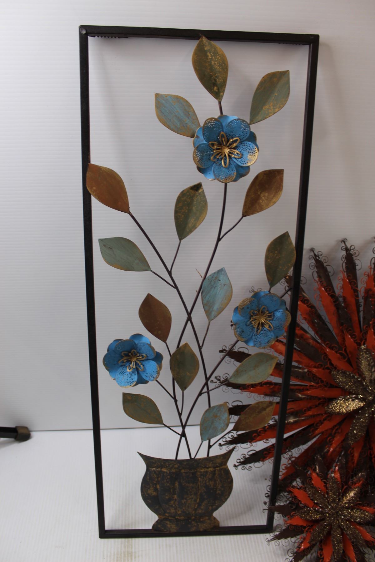 (3) Flower Decor Pieces and Flower Art (11x29in)