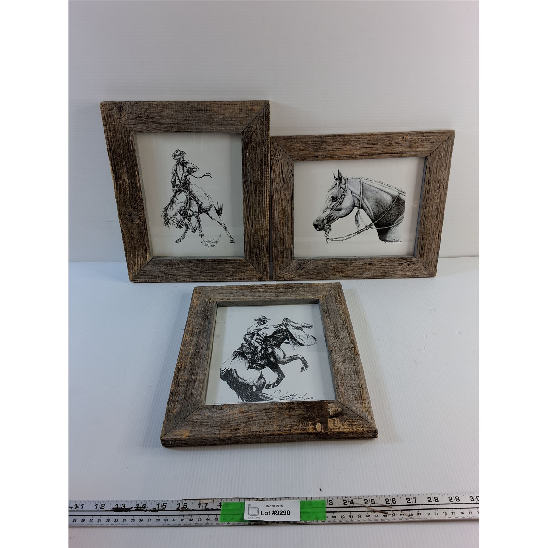 (3) Framed Horse Wall Hanging Art Prints 13'' x 11 1/2''