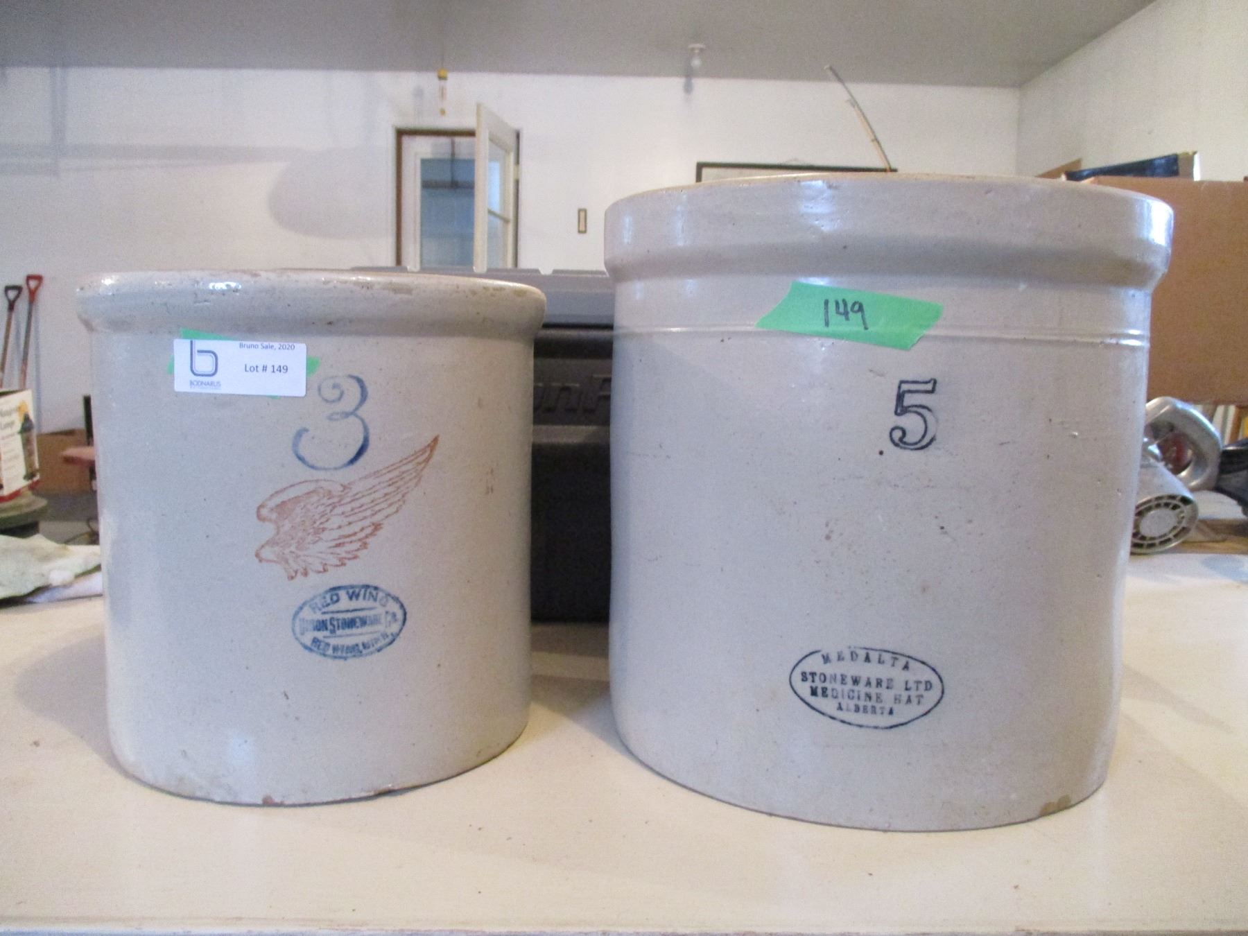 3 Gallon Red Wing and 5 Gallon Medalta Crocks (Cracks and Chips)