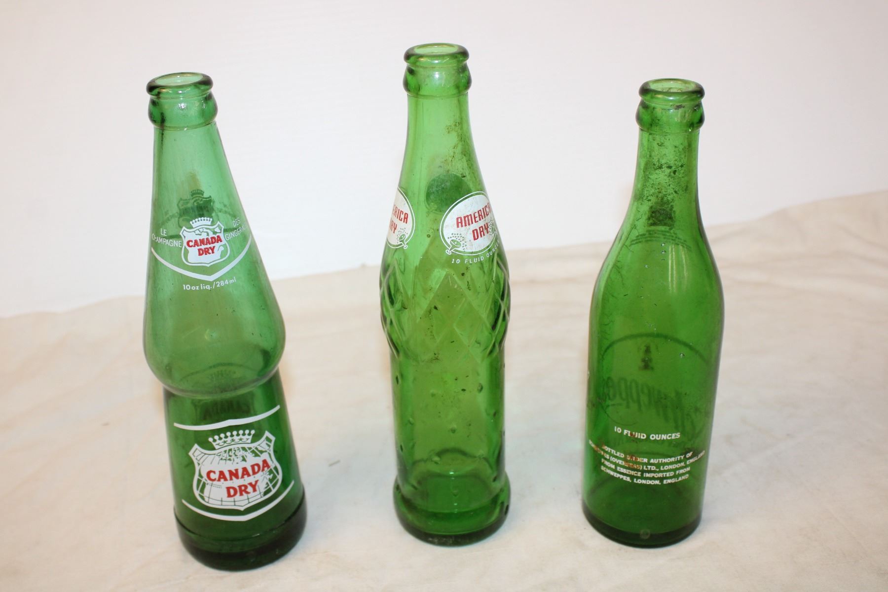 (3) Ginger Ale Bottles (Canada Dry, American Dry, and Schweppes)
