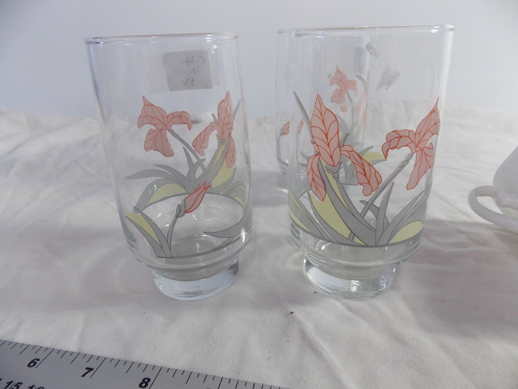 (3) Glass Tumblers, (2) Royal Grafton Bone Cups, and a Novelty Mug