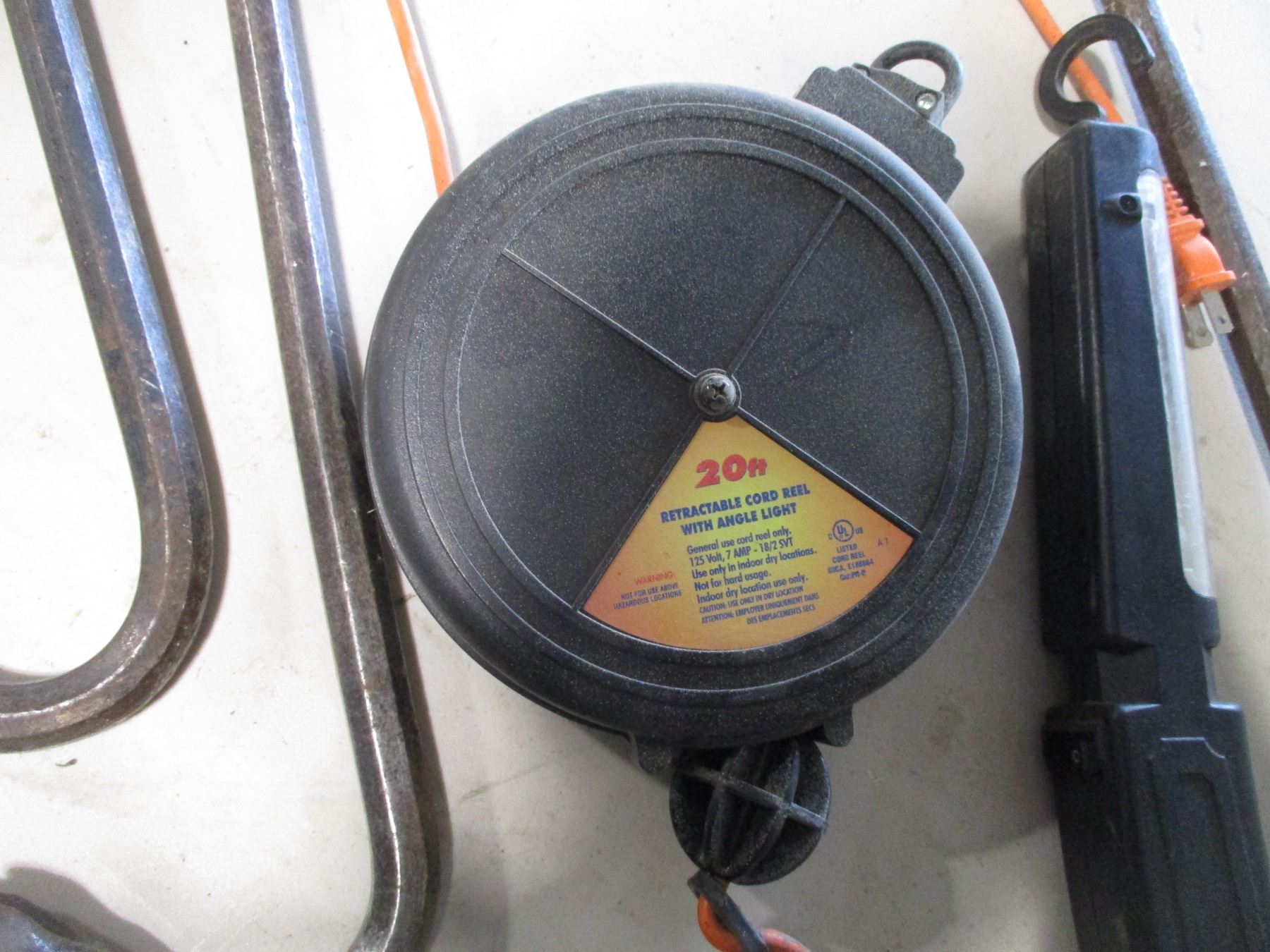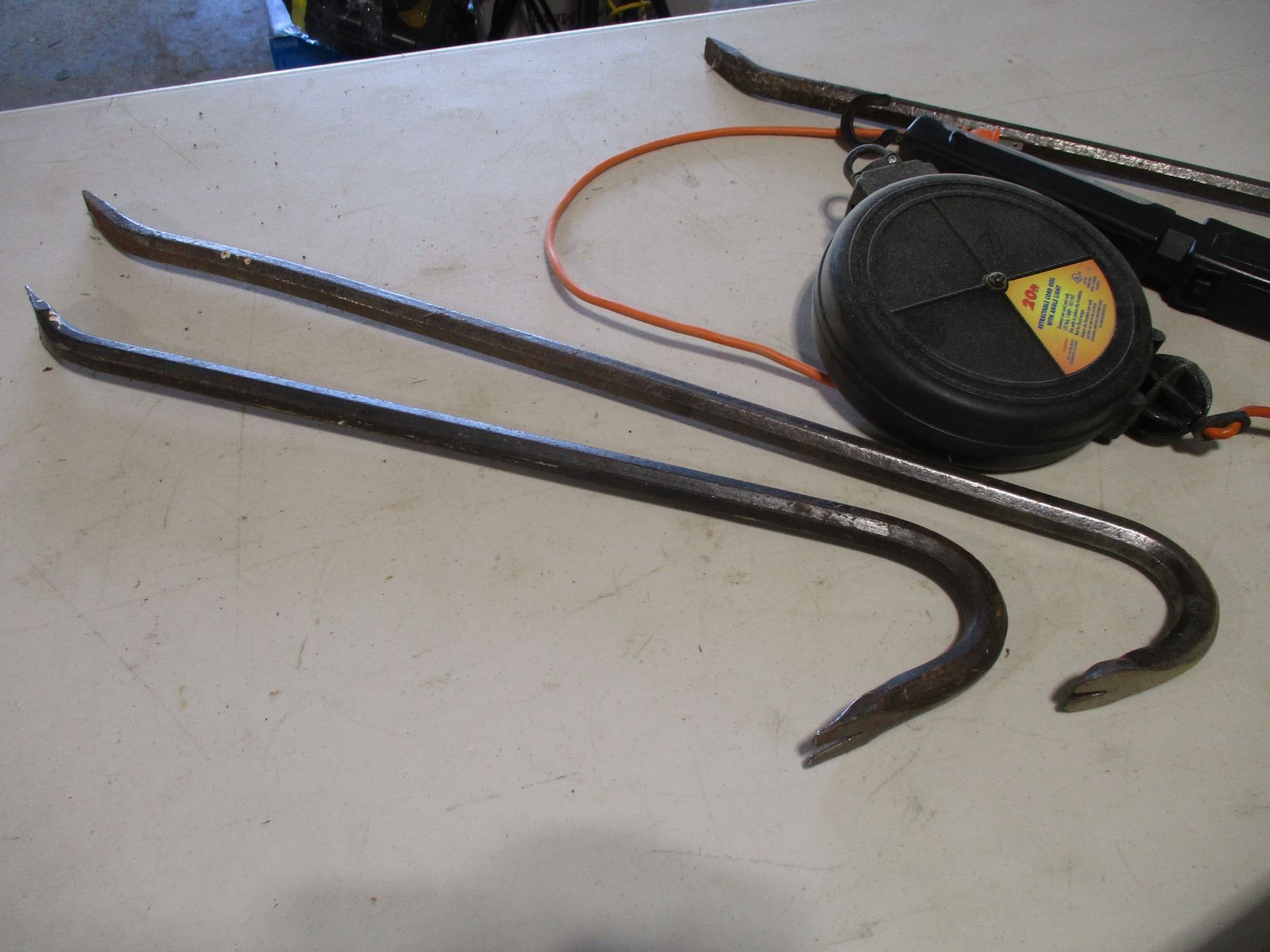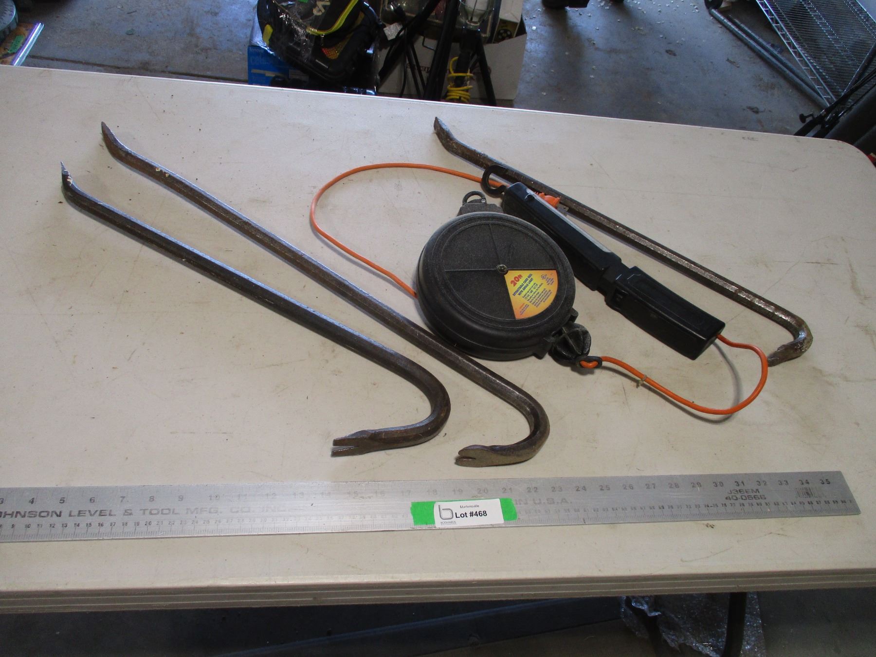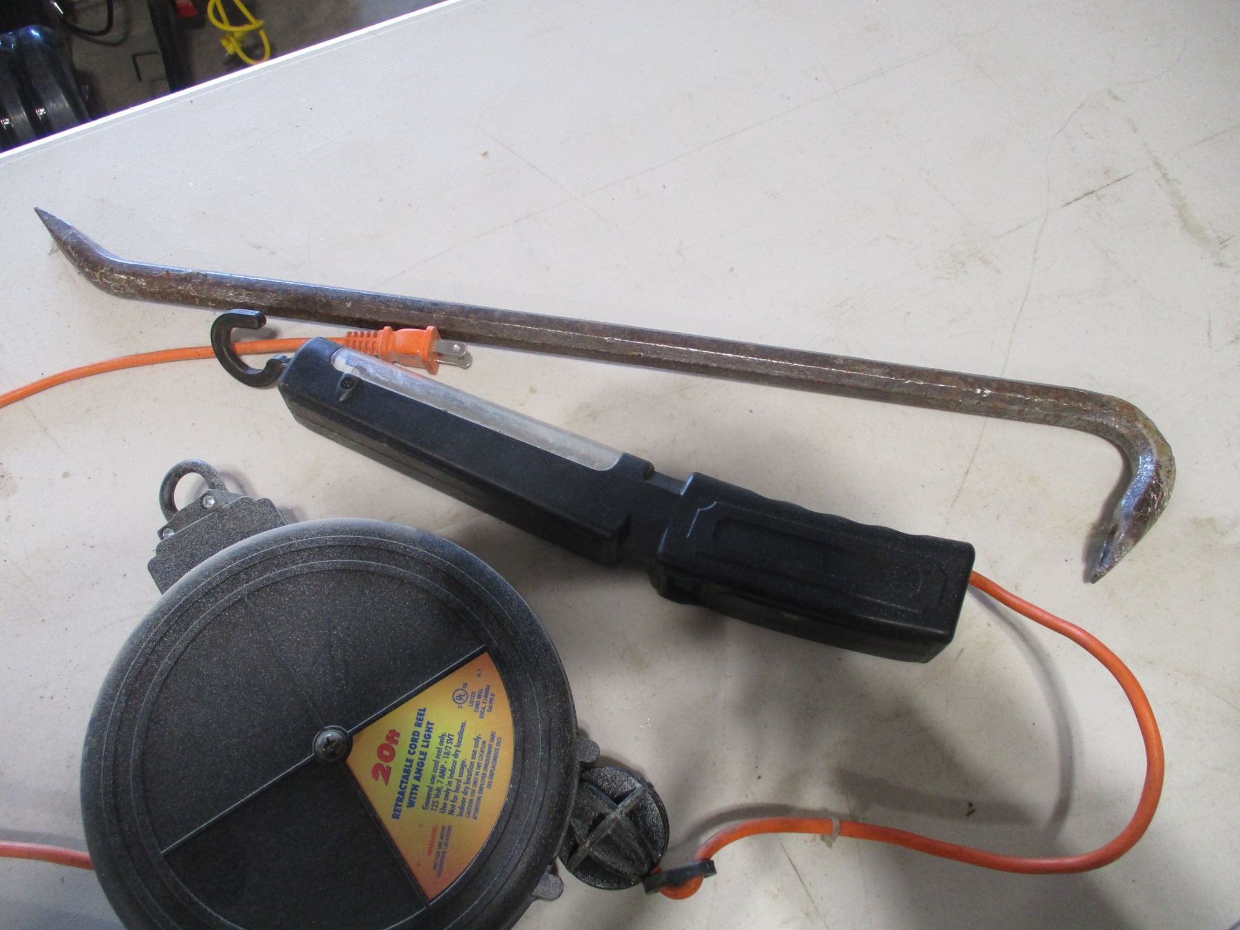 (3) Goose Neck Pry Bars, Retractable Trouble Light/Cord Reel