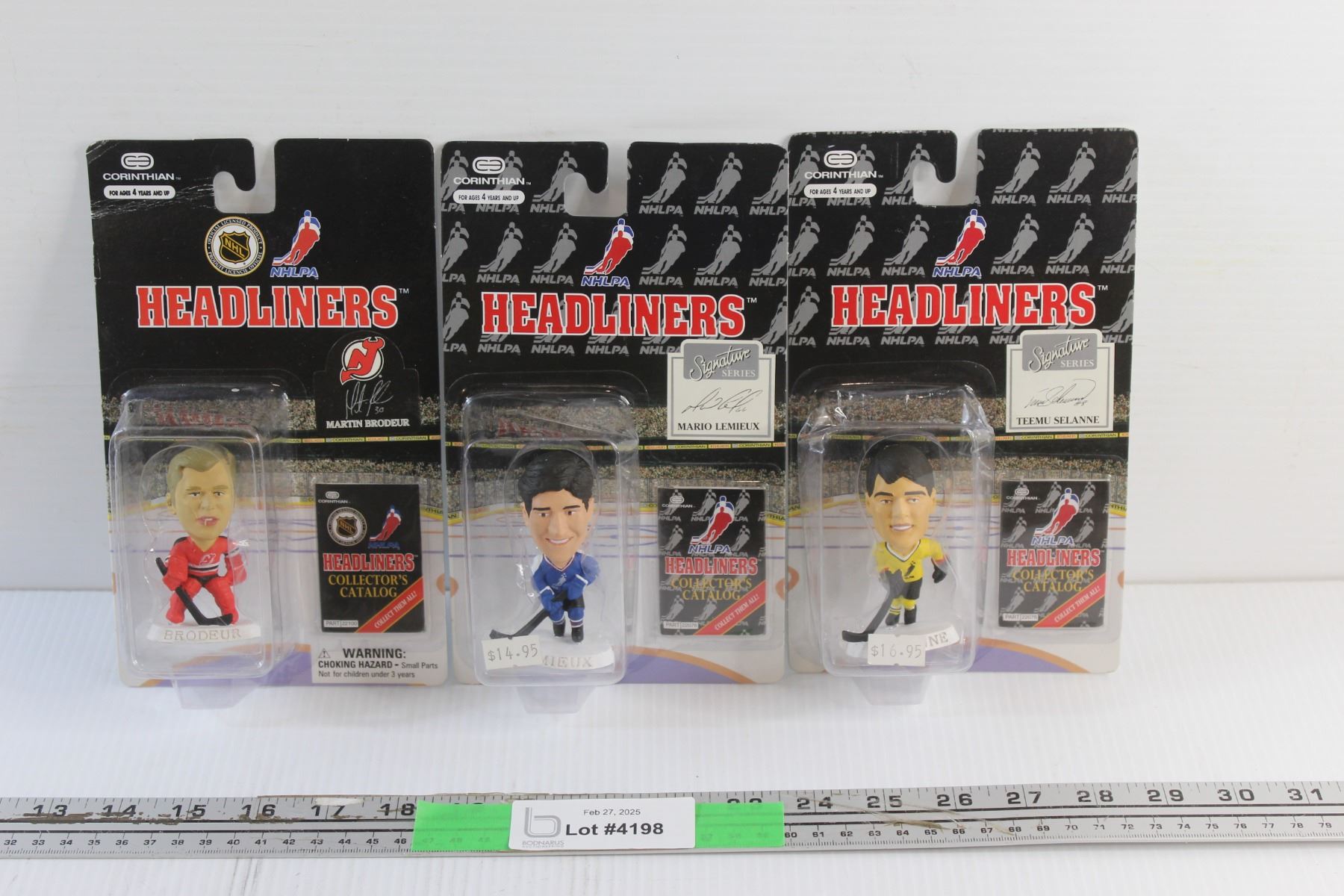 (3) Headliners NHL Collectible Figures and Catalogues - Martin Brodeur, Mario Lemieux and Teemu Selanne