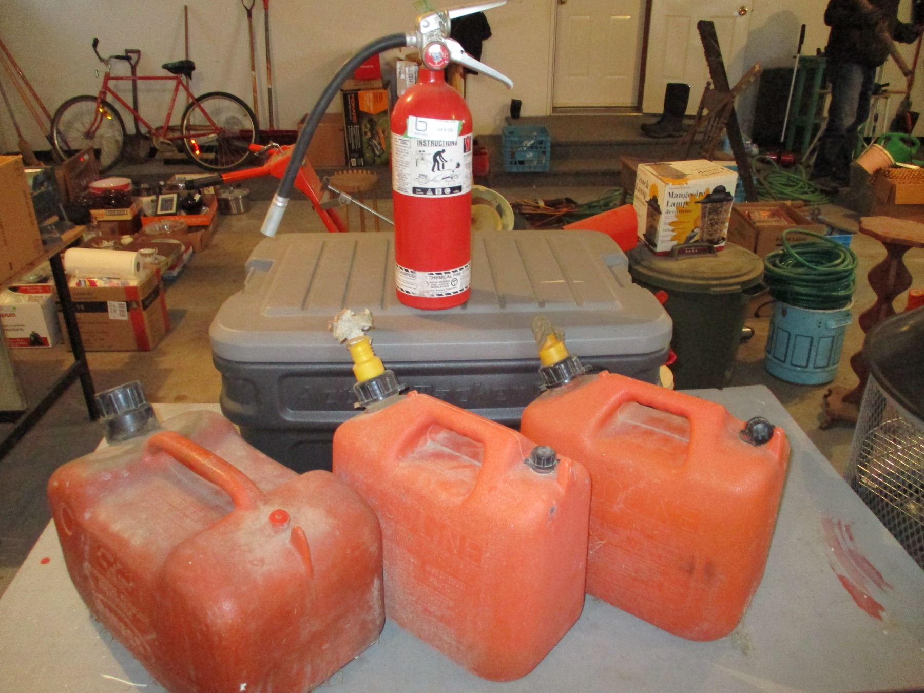3 Jerry Cans and Fire Extinguisher
