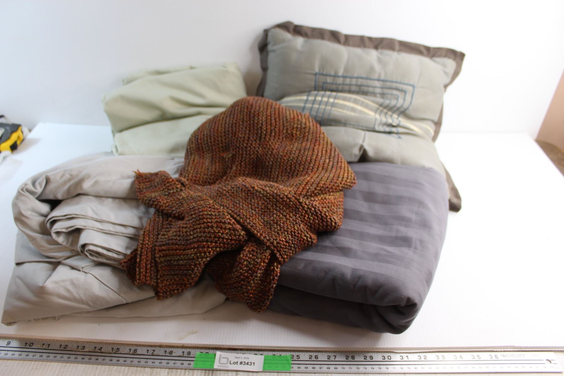 (3) King Size Duvet Covers, Pillow and Pleated Blanket