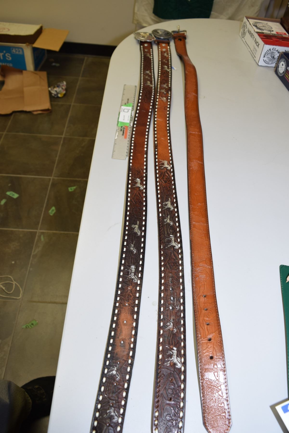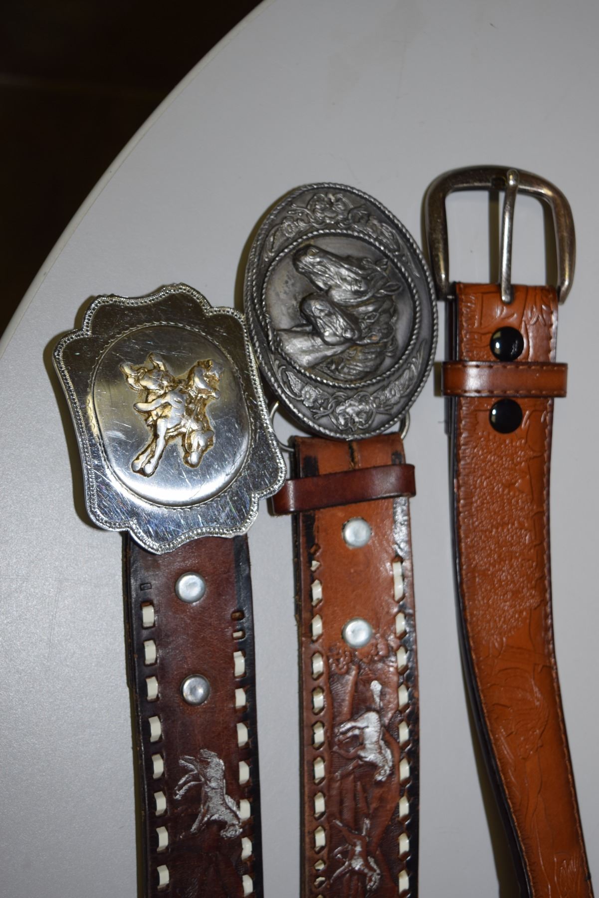 3 Leather Western Belts and Buckles