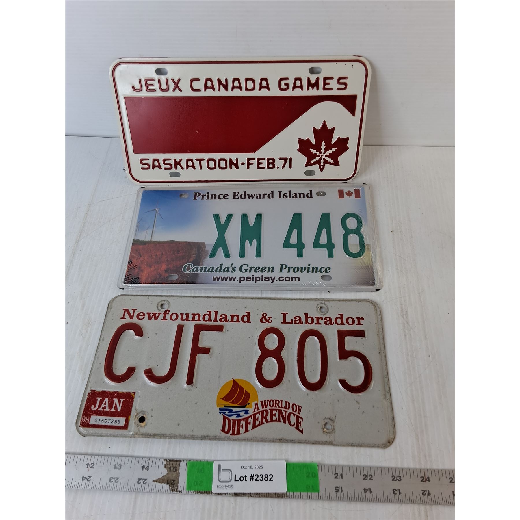 (3) License Plates- Canada Games, PEI, Newfoundland