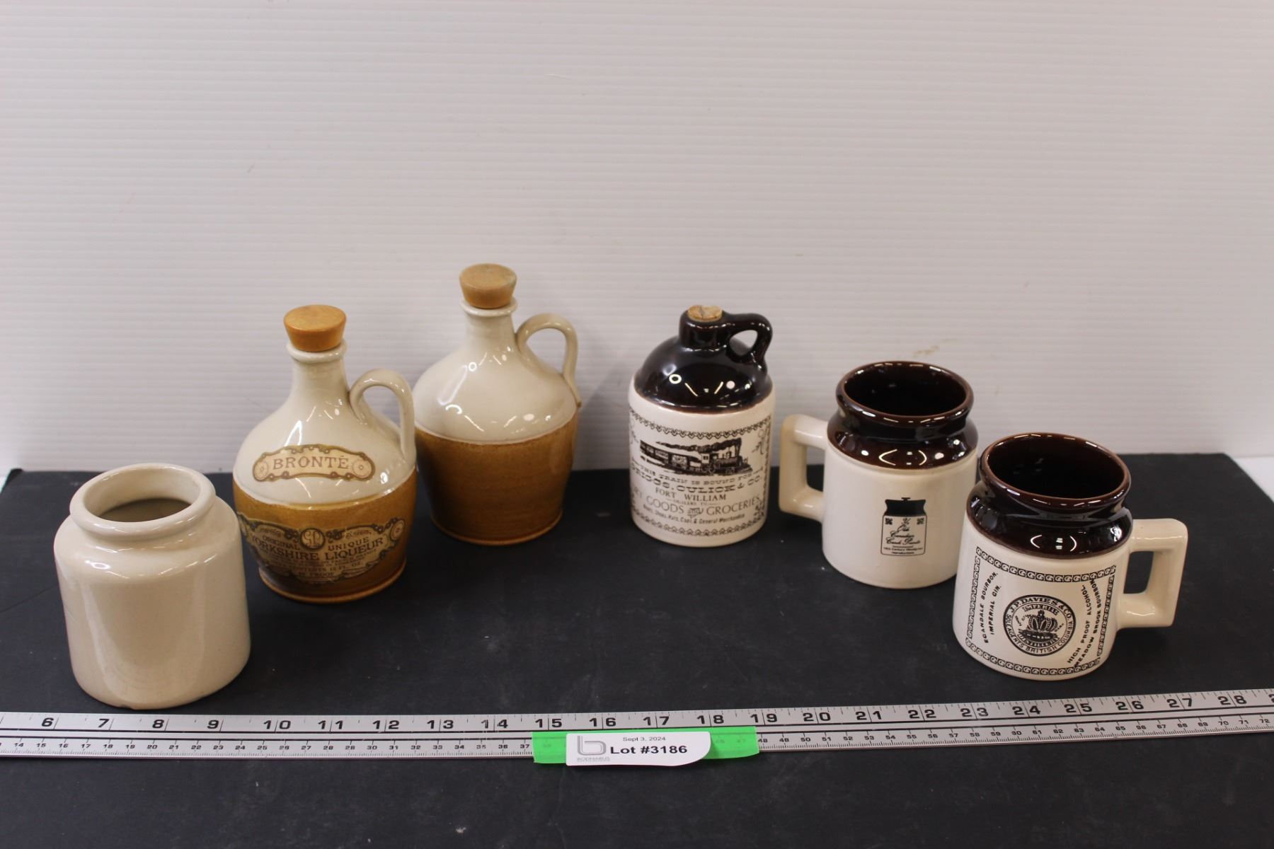 (3) Liquor Crock, (2) Crock Mugs, Small Crock