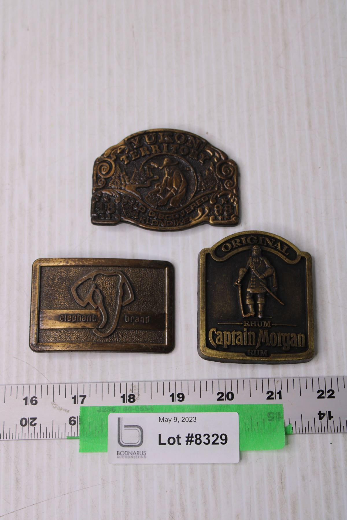 (3) Metal Belt Buckles - Captain Morgan, Yukon
