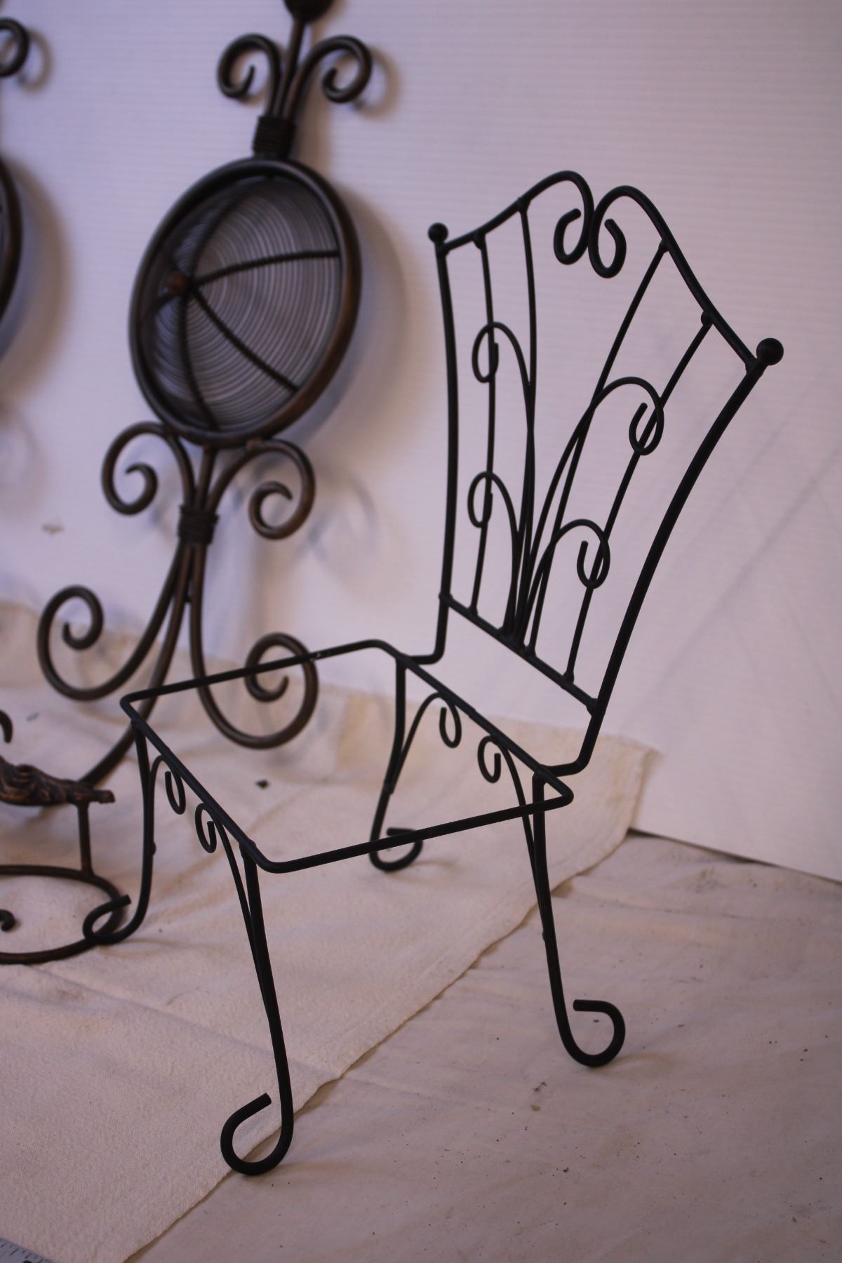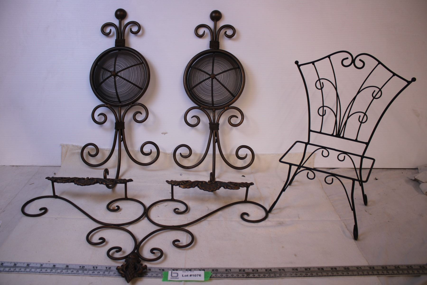 (3) Metal Wall Hangers and Wire Chair (Planter)
