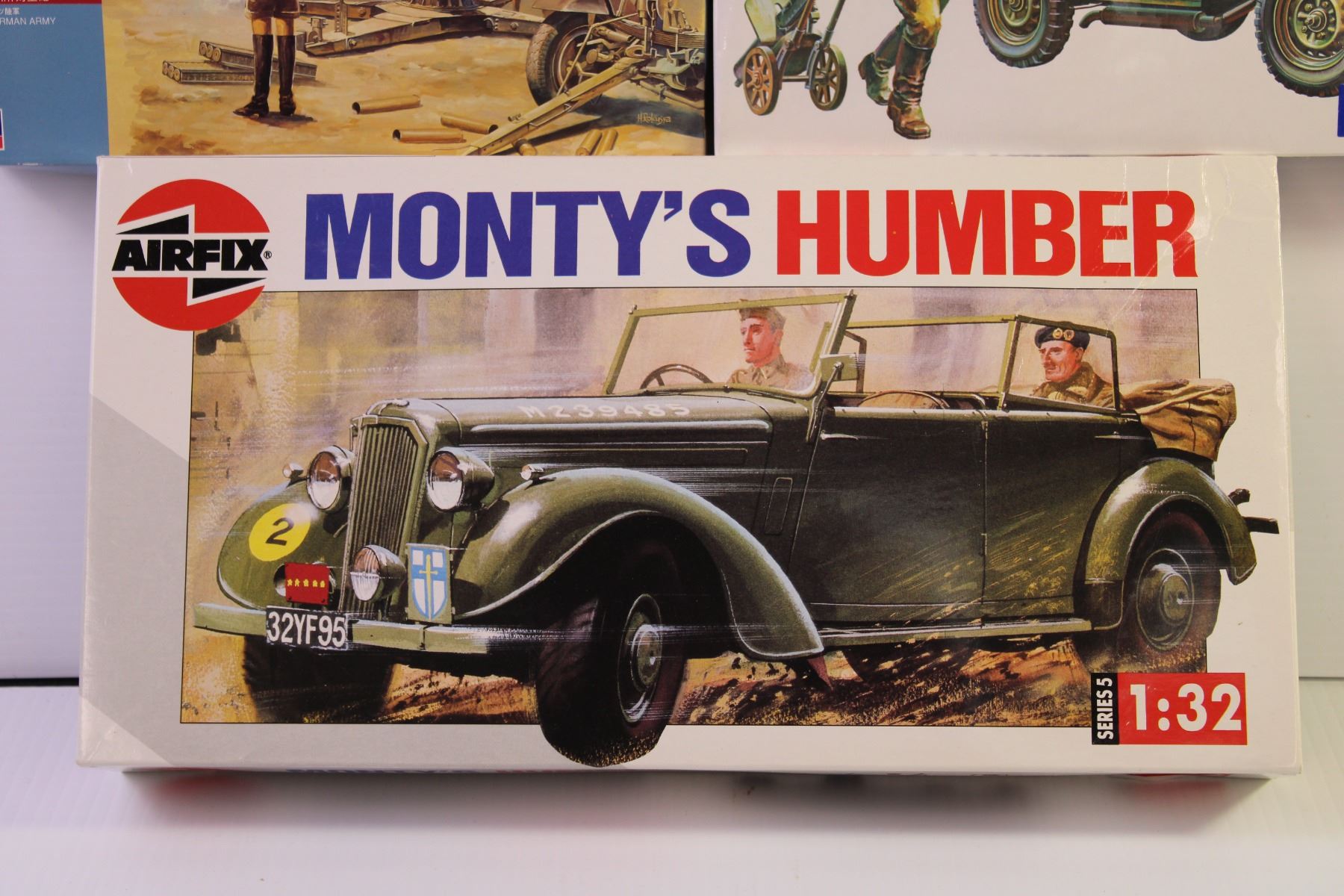 (3) Model Kits (Monty’s Humber 1:32, Russian Field Car Gaz67B 1:35, and 88mm Gun Flak 18 1:72)