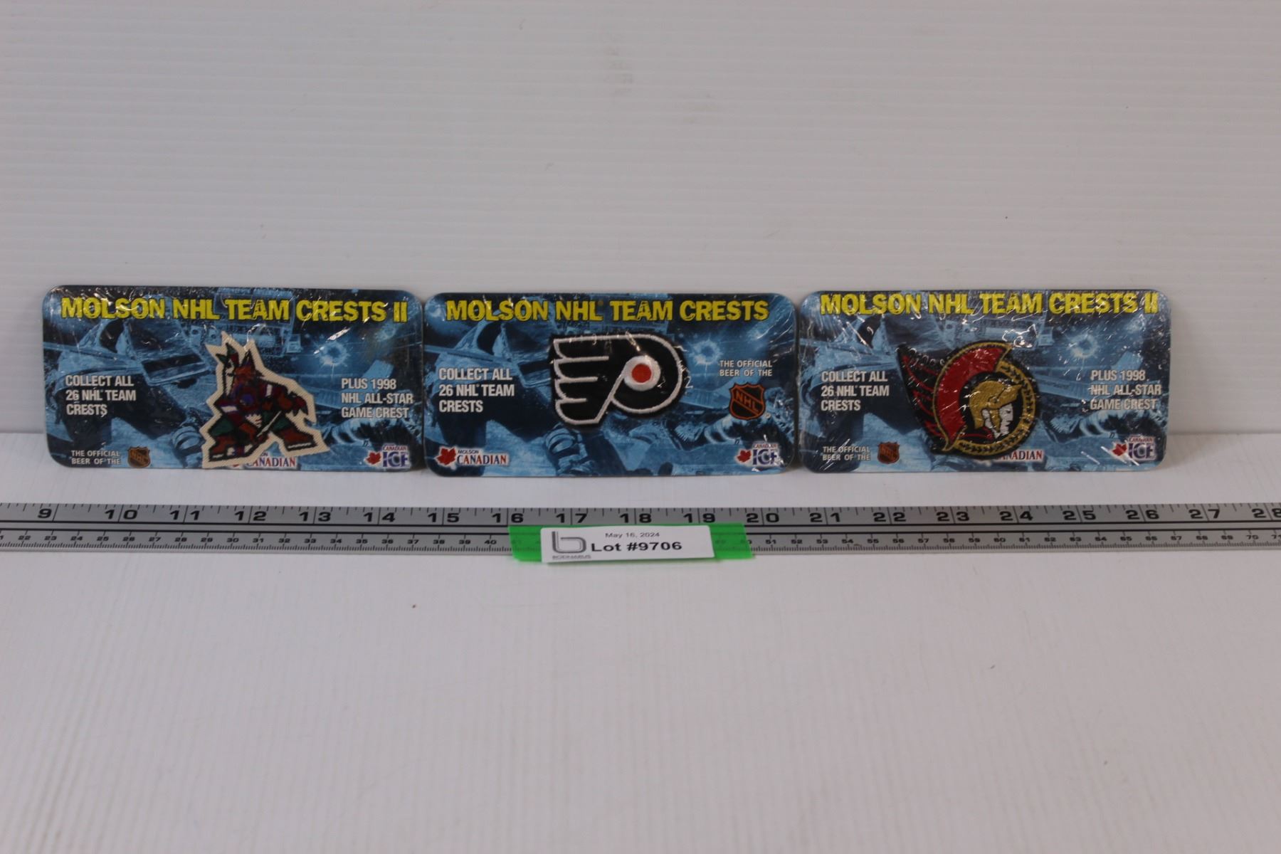 (3) Molson NHL Team Crests II: Phoenix Coyotes; Philadelphia Flyers; Ottawa Senators