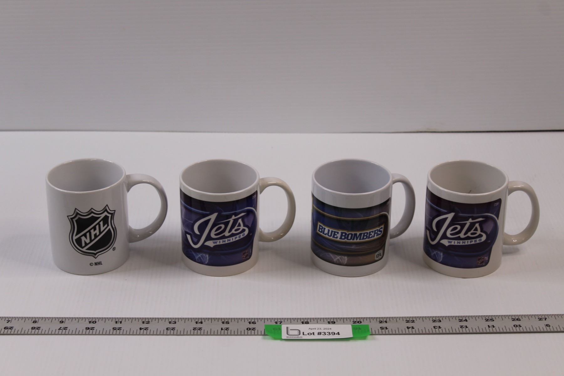 (3) NHL/CFL Branded Ceramic Coffee Mugs - NHL, Winnipeg Jets & Winnipeg Blue Bombers
