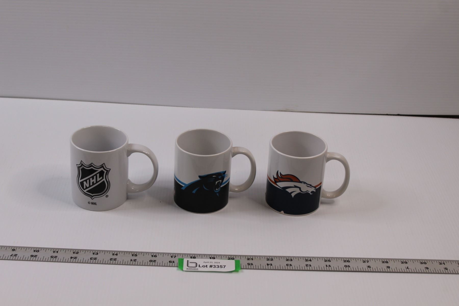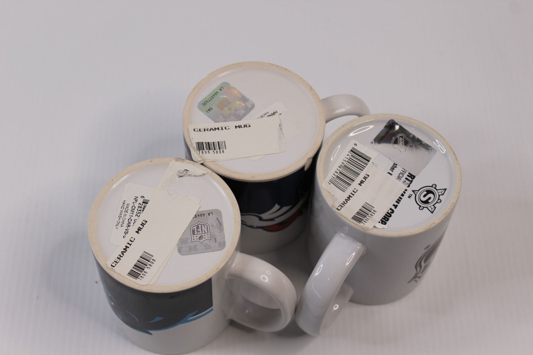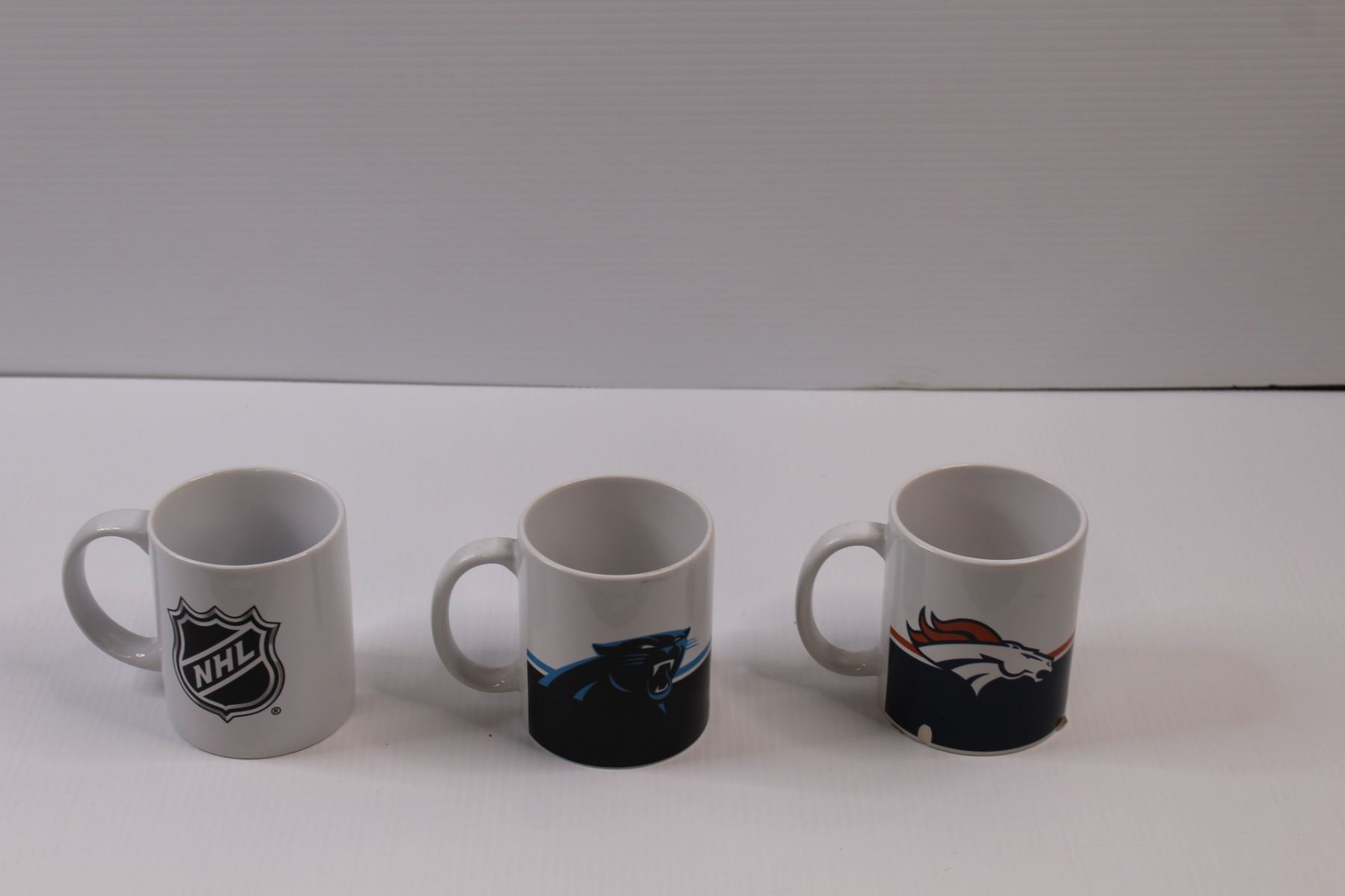 (3) NHL/NFL Branded Ceramic Coffee Mugs - NHL, Panthers & Broncos (Chips)