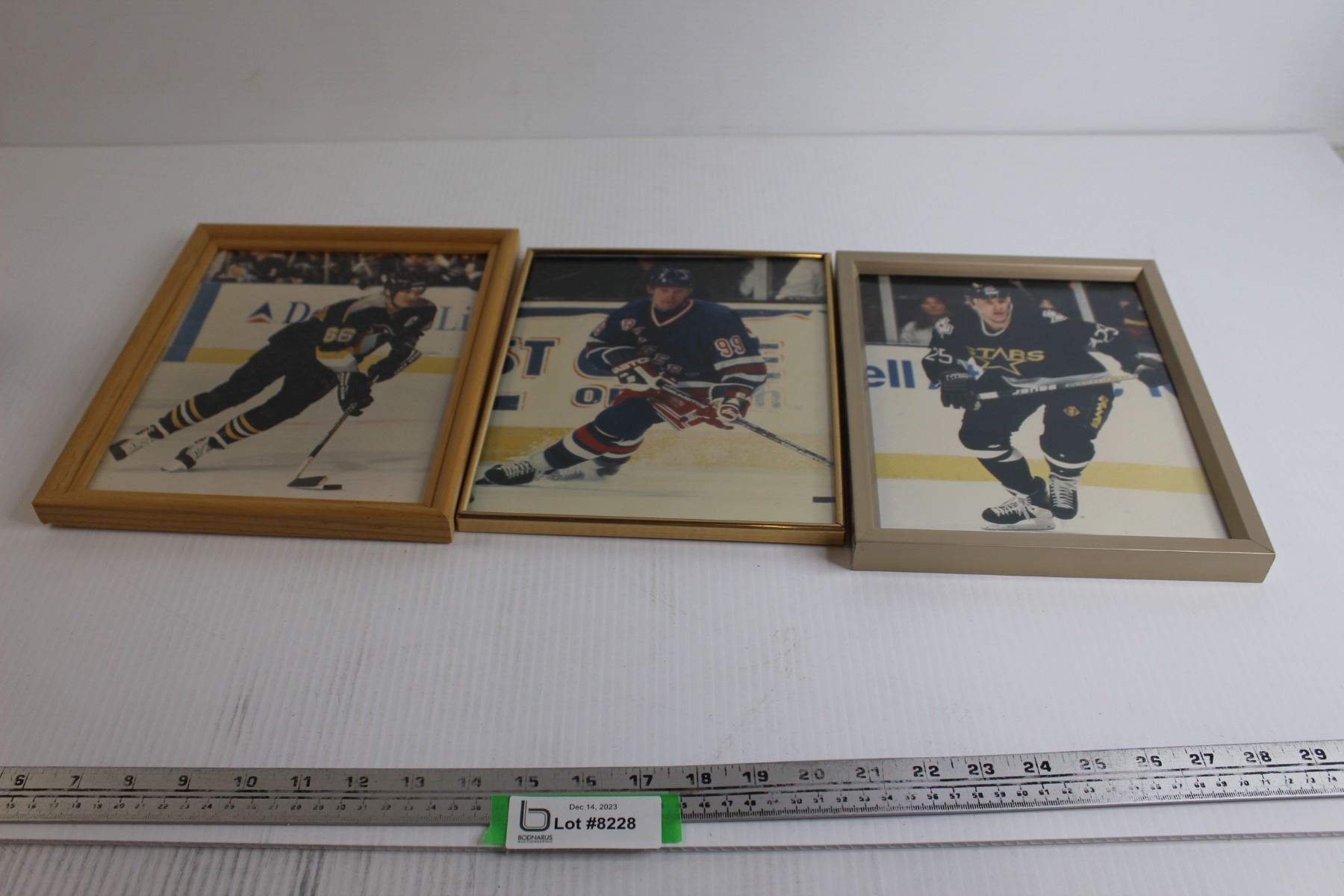 (3) NHL Player's Photos - Wayne Gretzky, Mario Lemieux, Joe Nieuwendyk, 8" x 10", NHL Licensed, in Frames
