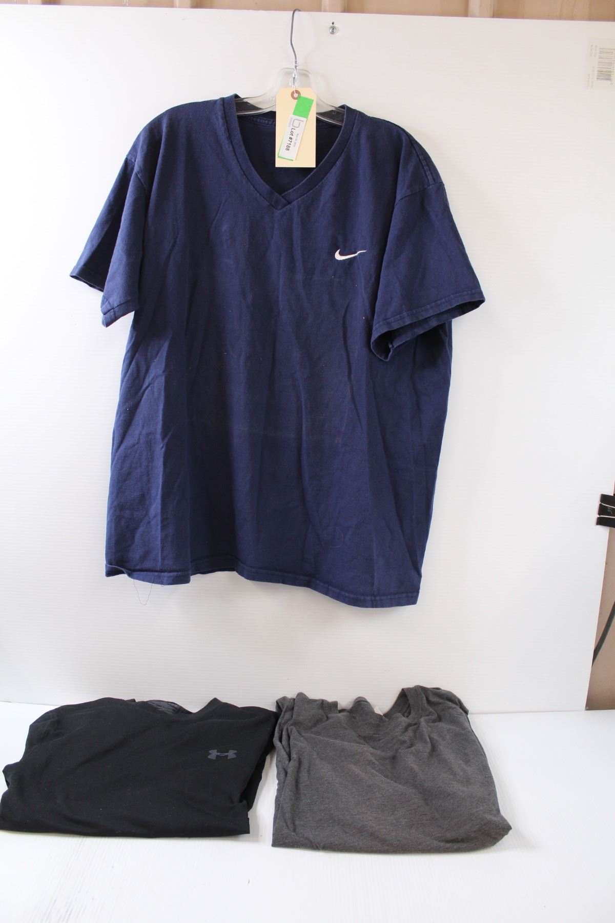 (3) Nike t shirt, Under armour long sleeve shirt, grey t shirt- large fitting