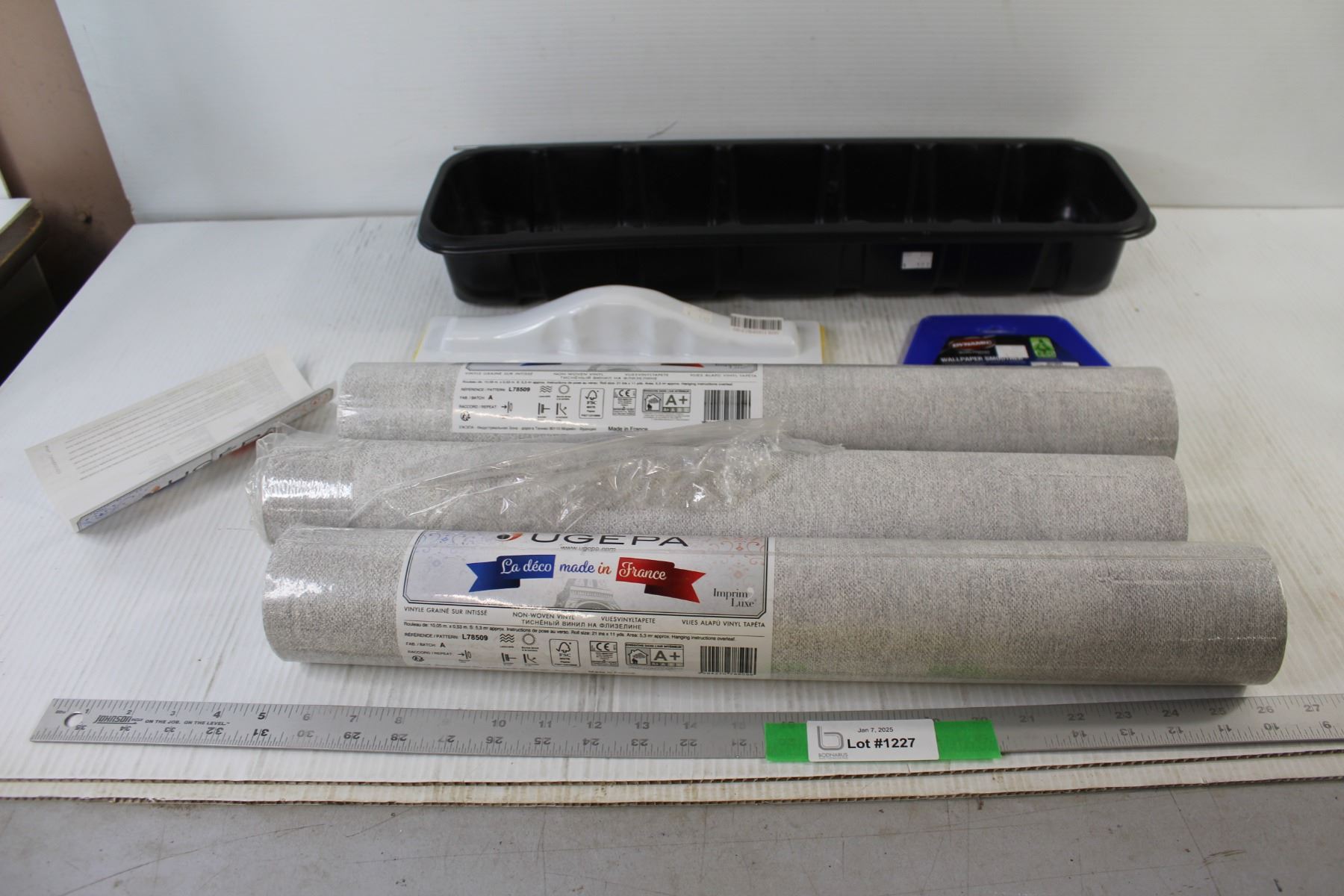 (3) Non Woven Vinyl Wallpaper Rolls, Paint Tray, Wallpaper Smoother