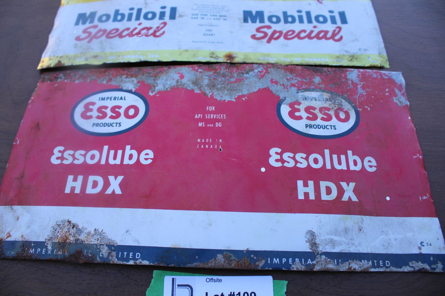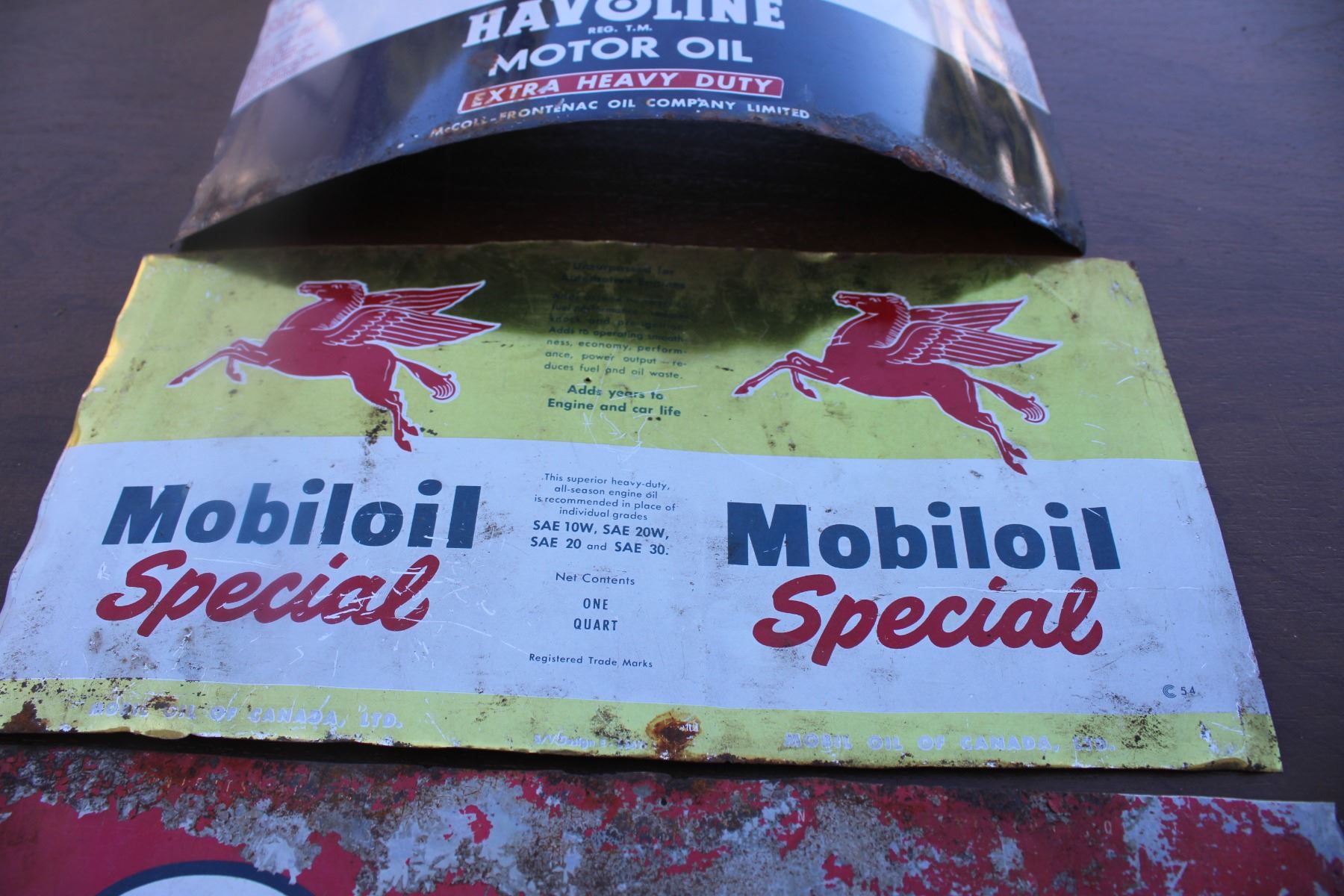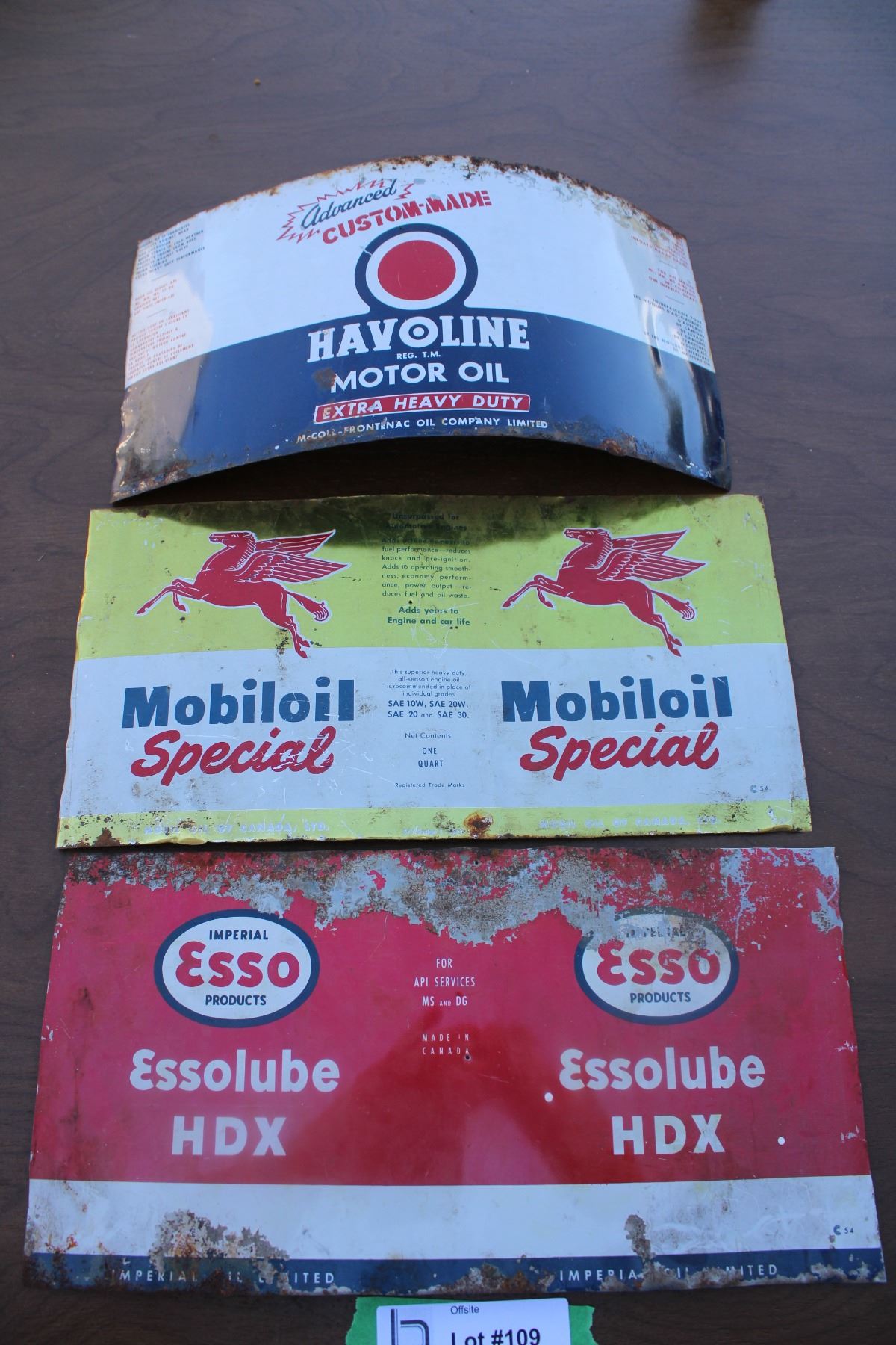 (3) Oil can side panels - Esso, Mobiloil, Havoline