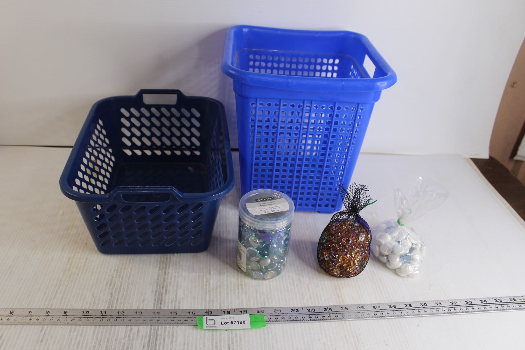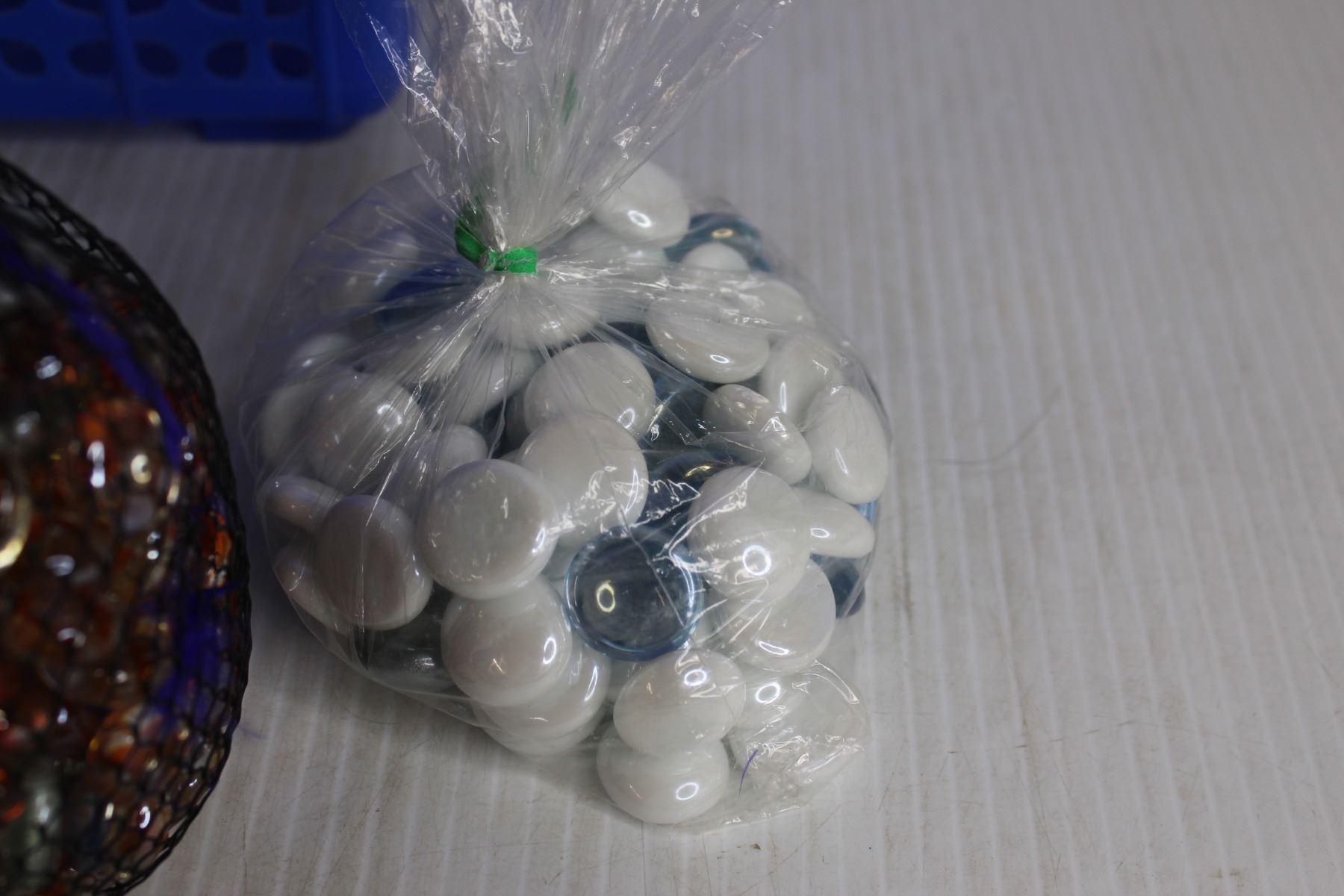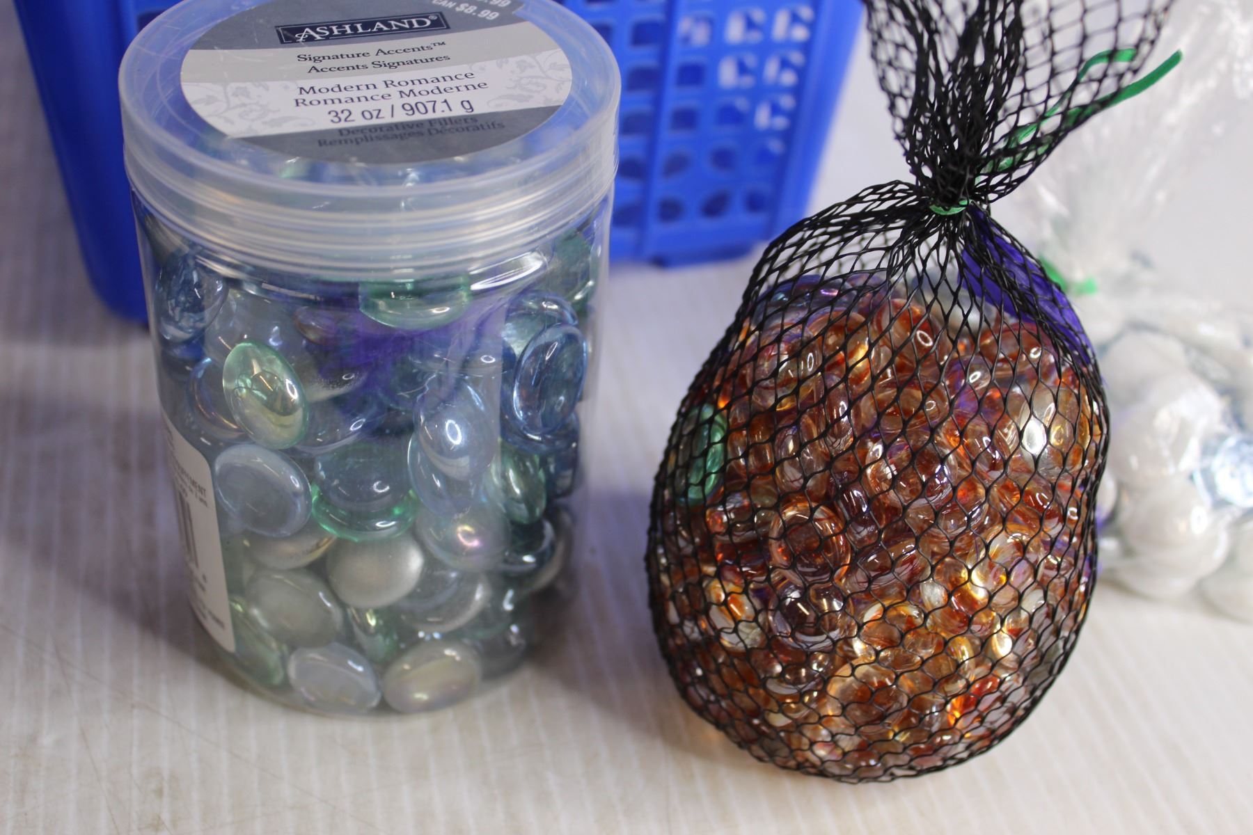 (3) Packs Decorative Filler Rocks, (2) Plastic Bins