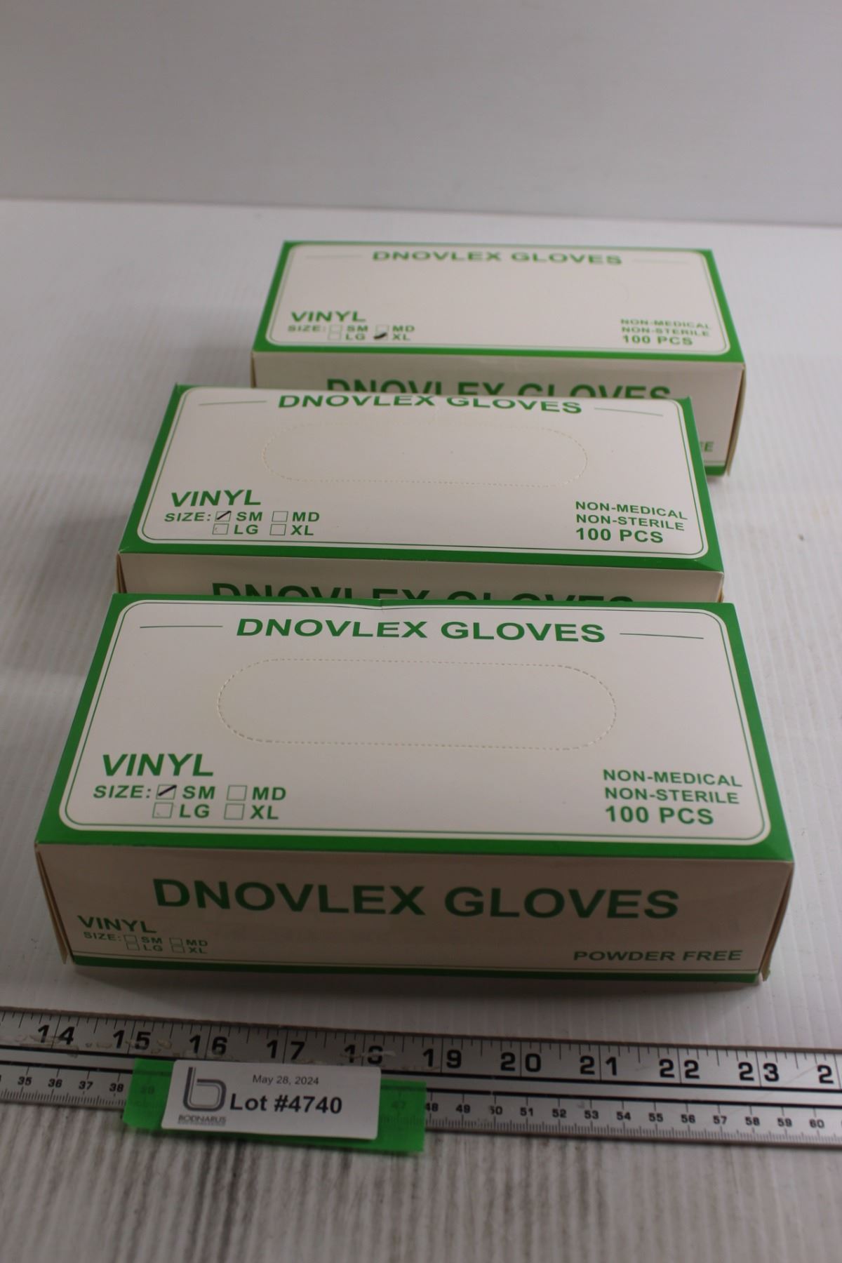 (3) Packs Dnovlex Vinyl Gloves - Sizes S and XL, Sealed