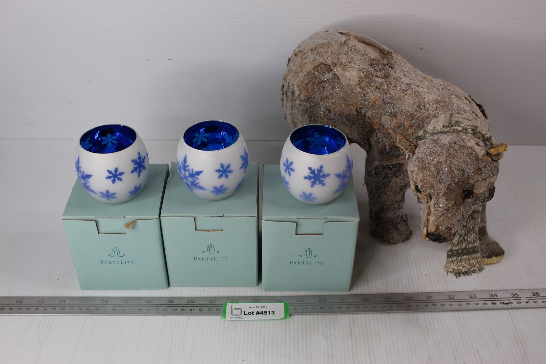 (3) Party Lite Candle Holders w/ Bear Decoration Piece