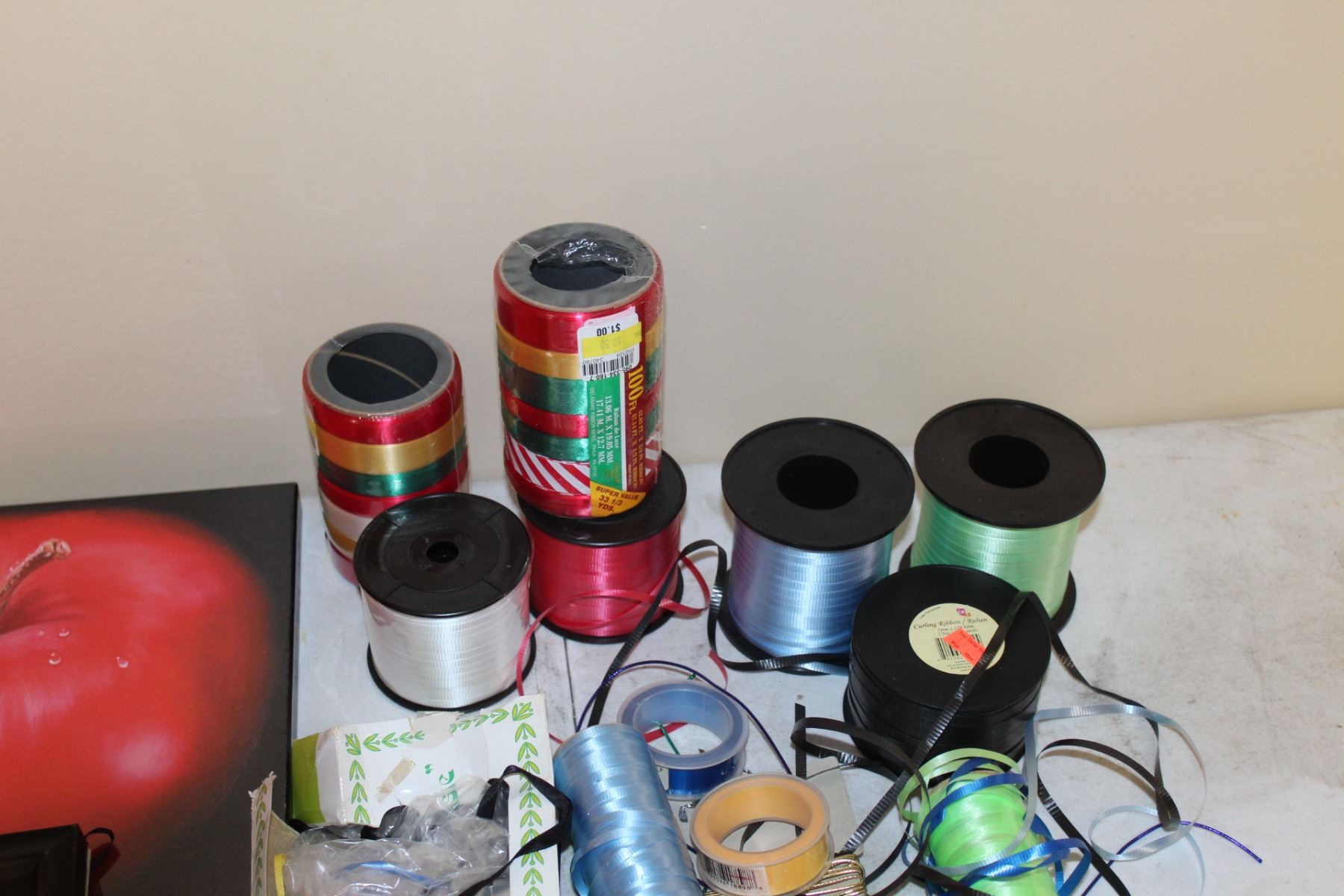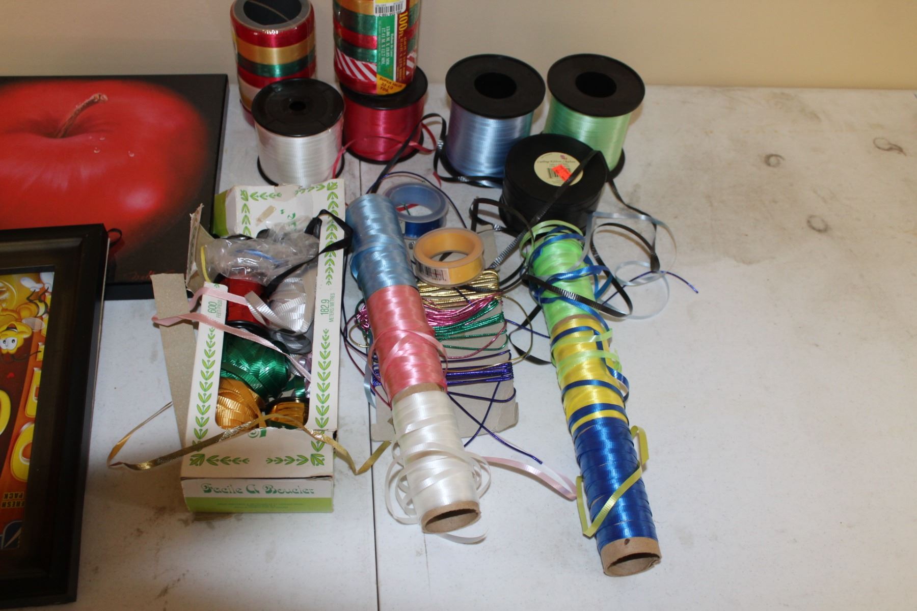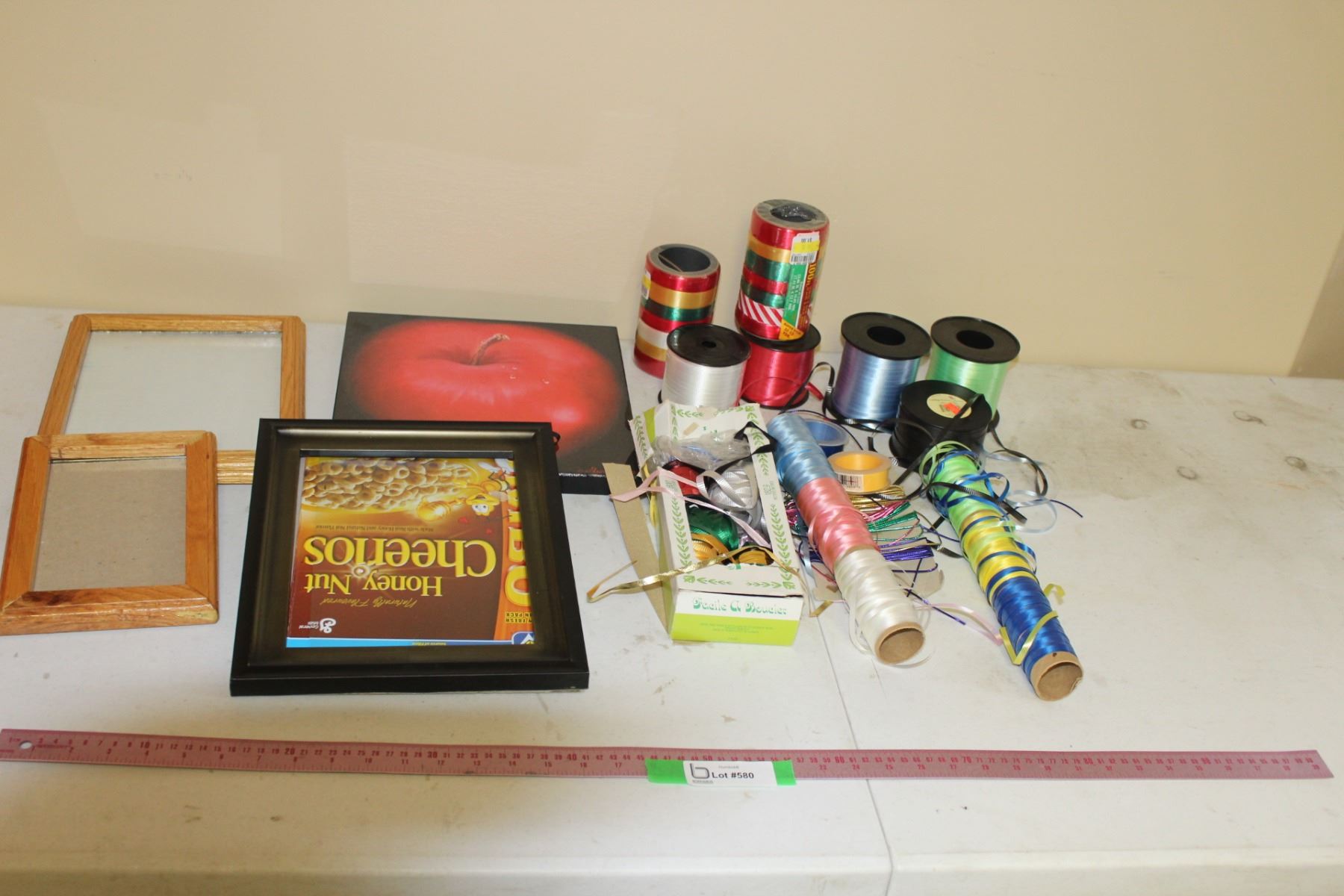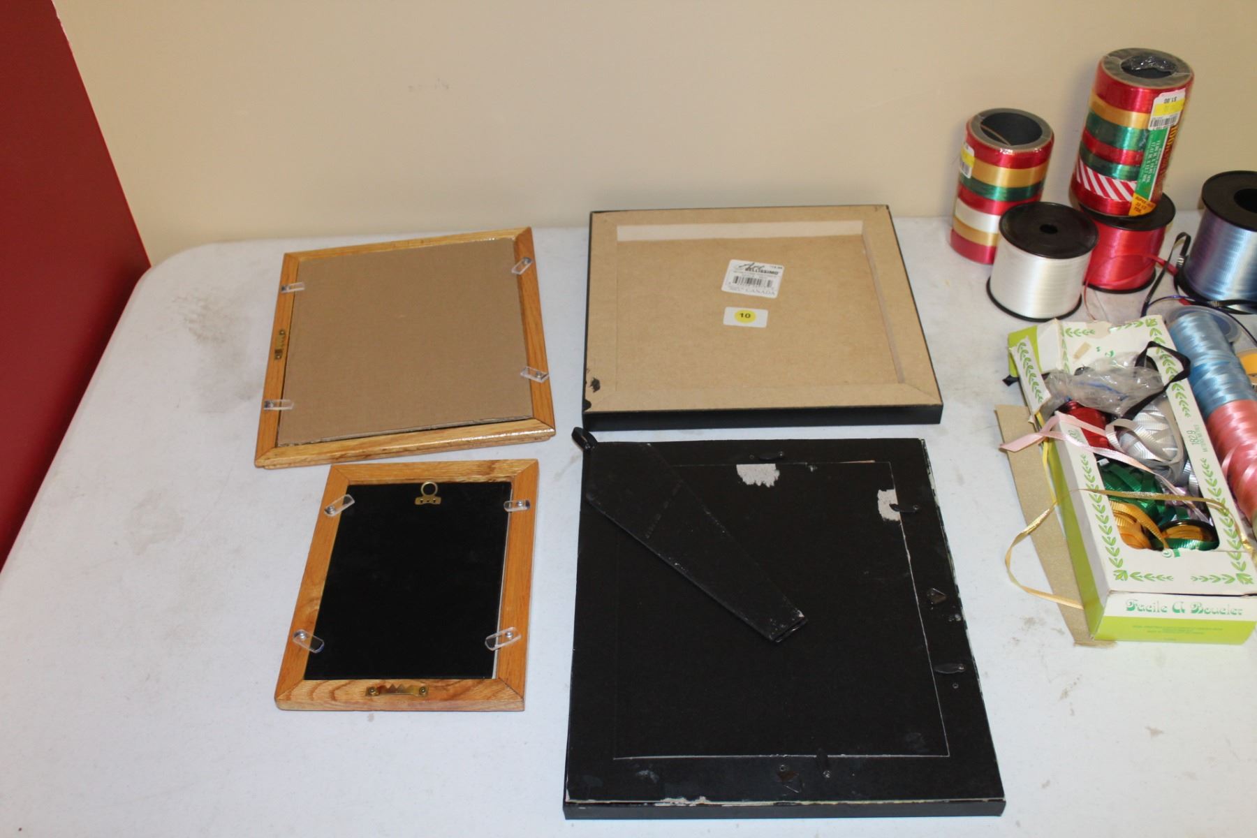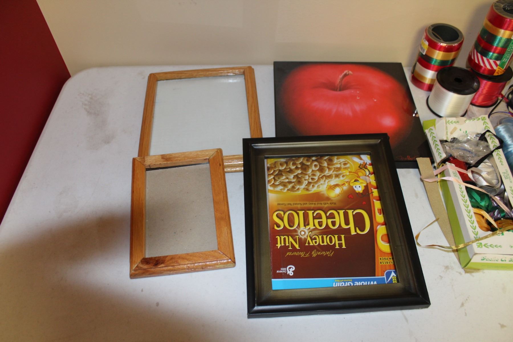 (3) Picture Frames, (1) Picture, Ribbons, etc.