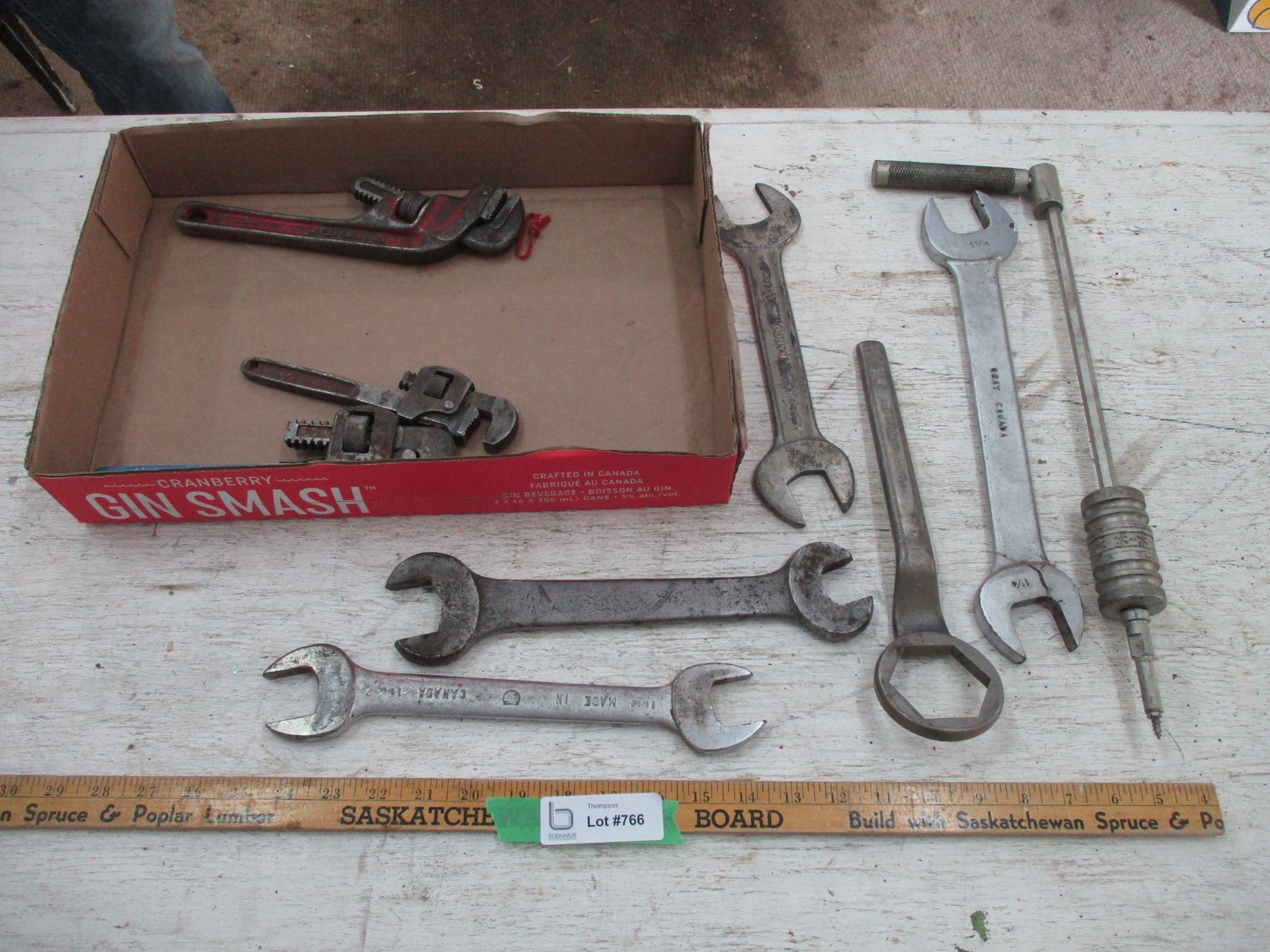 (3) Pipe Wrenches, Wrenches, Slide Hammer, Misc.