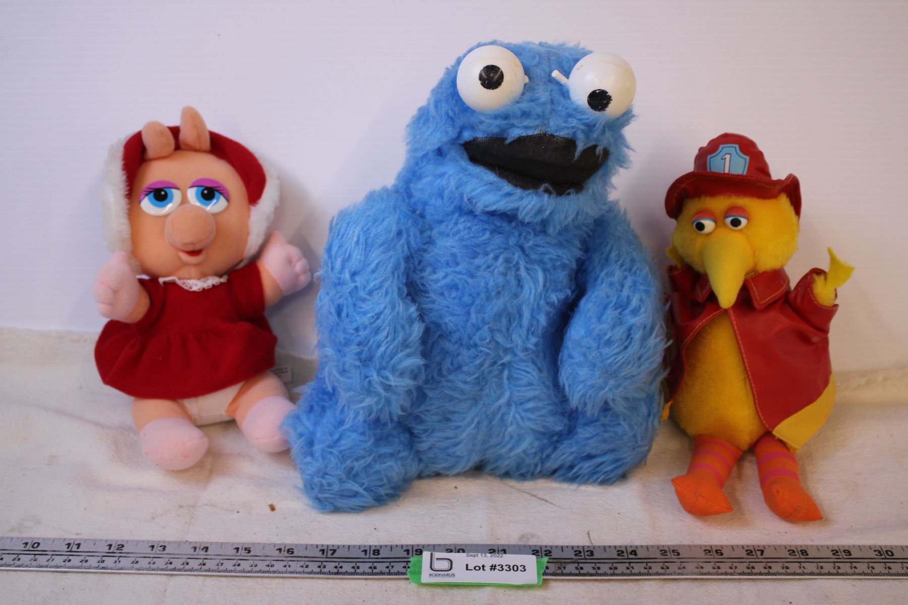 (3) Plushies (Miss Piggy, Cookie Monster, And Big Bird)
