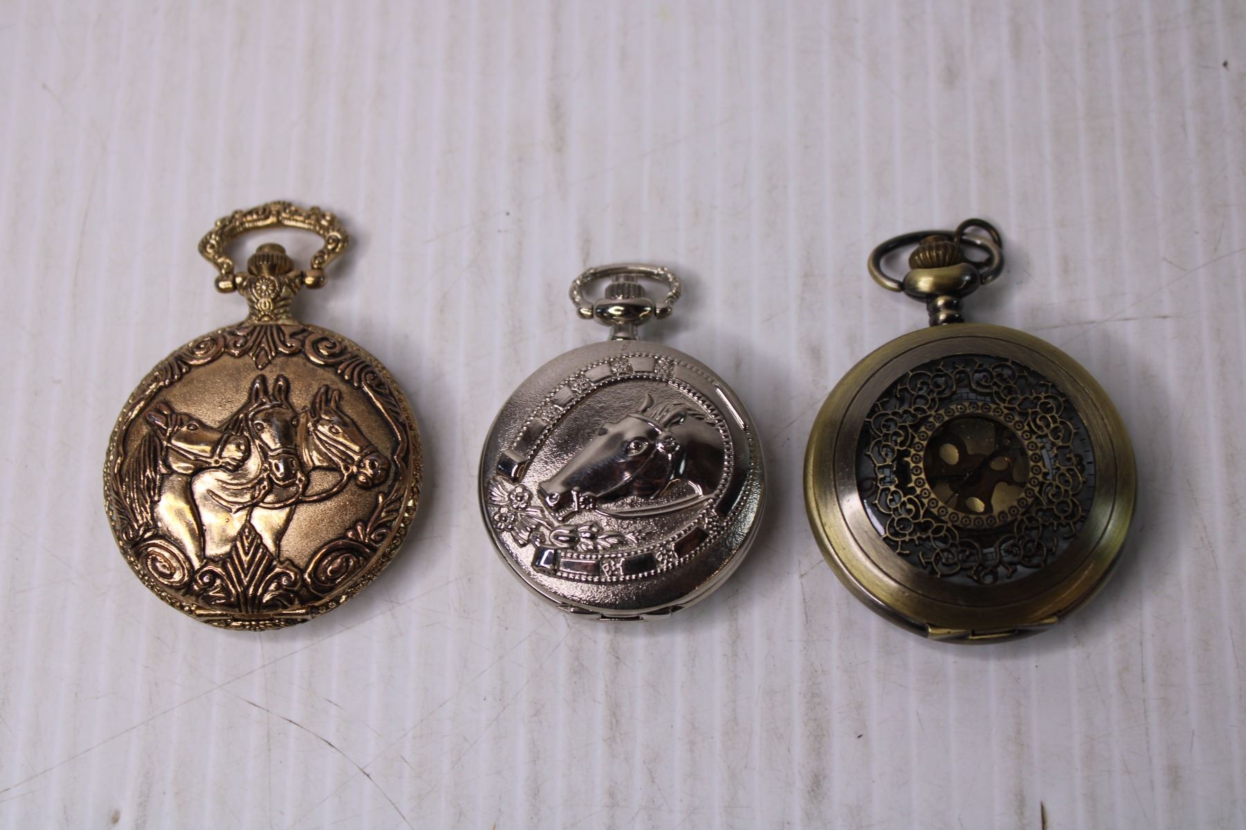 (3) Pocket Watches and Watch Clip