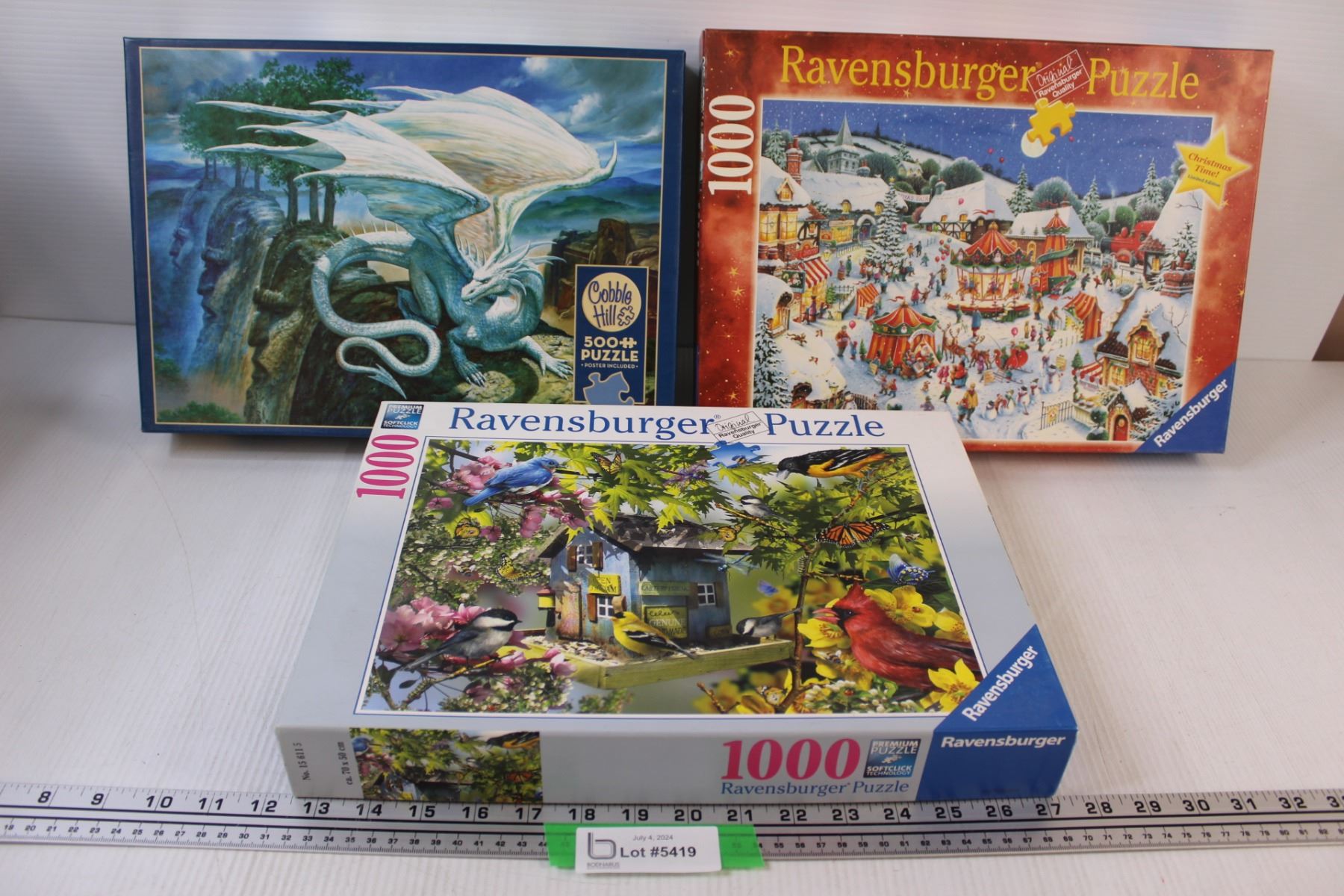 (3) Puzzles: Dragon, Christmas, Birds