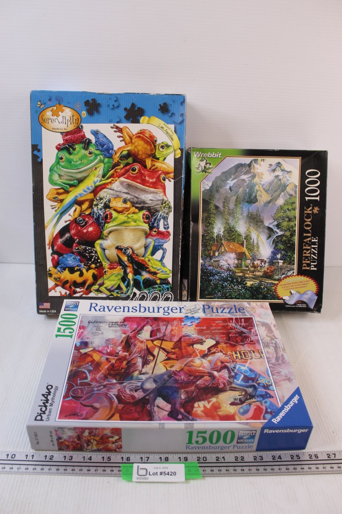 (3) Puzzles: Frog, Mountain Scene, Horse Statue Picture