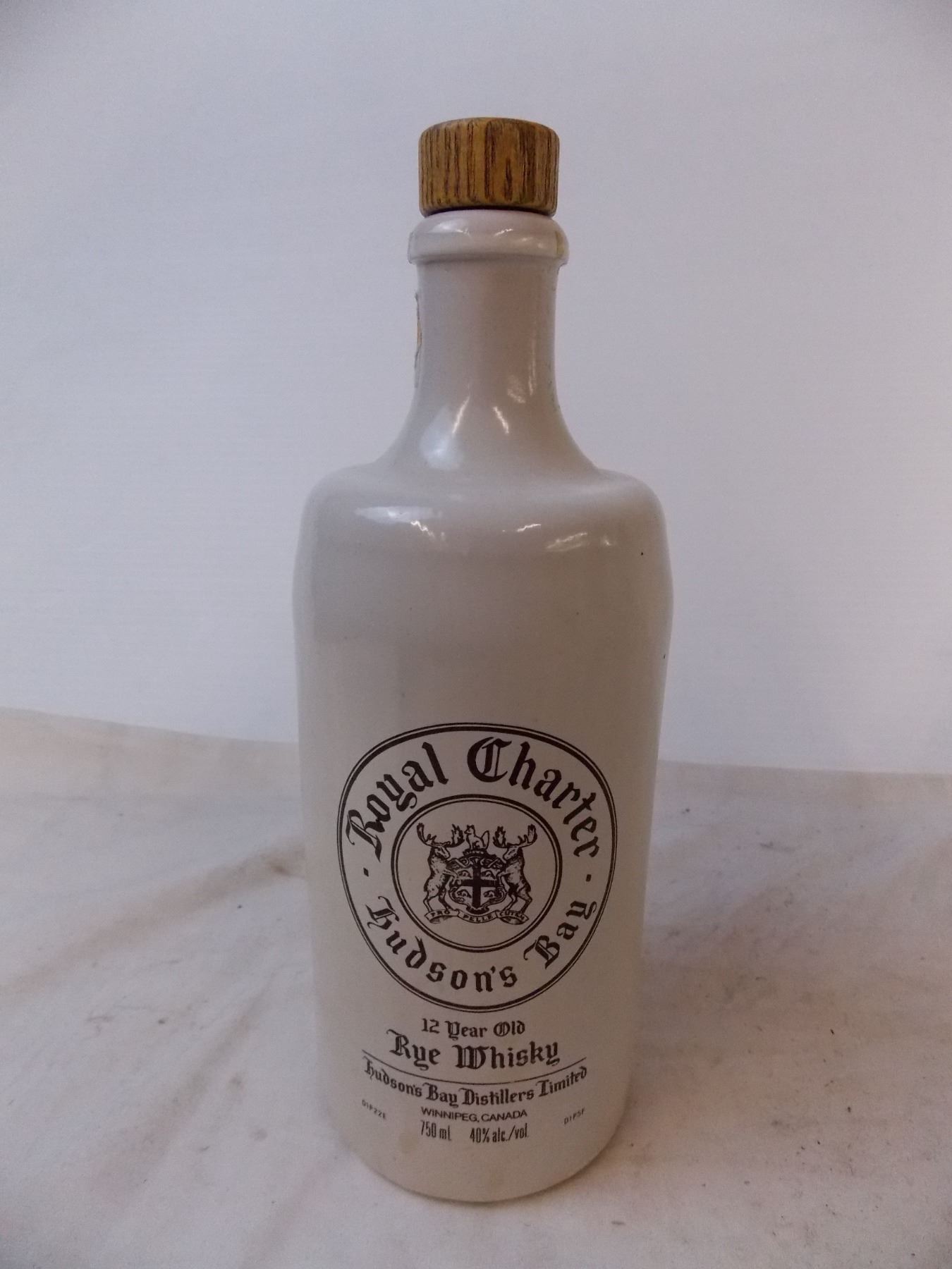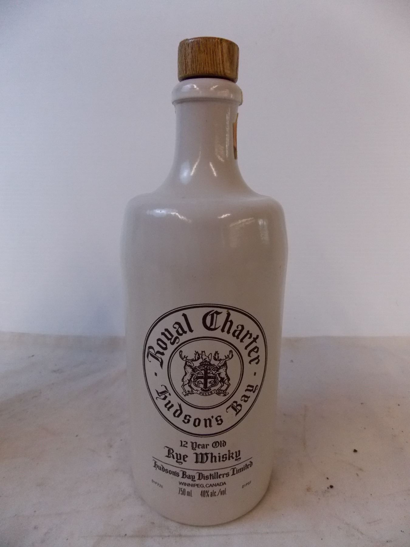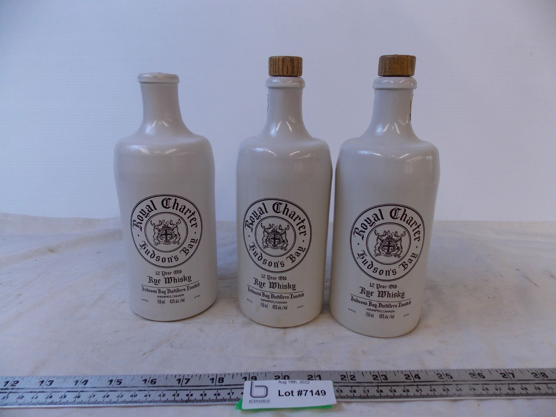(3) Royal Charter Hudson’s Bay Whisky Stoneware Bottles w/ Stoppers
