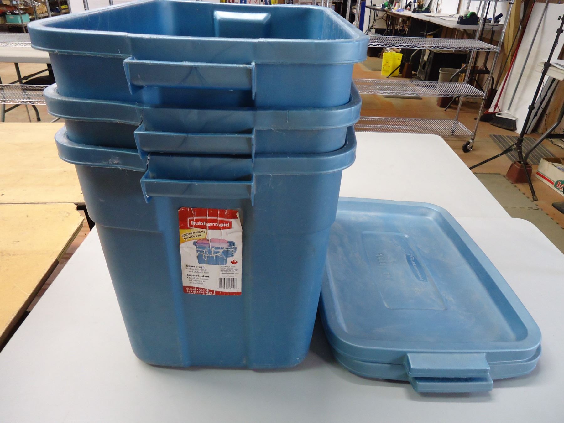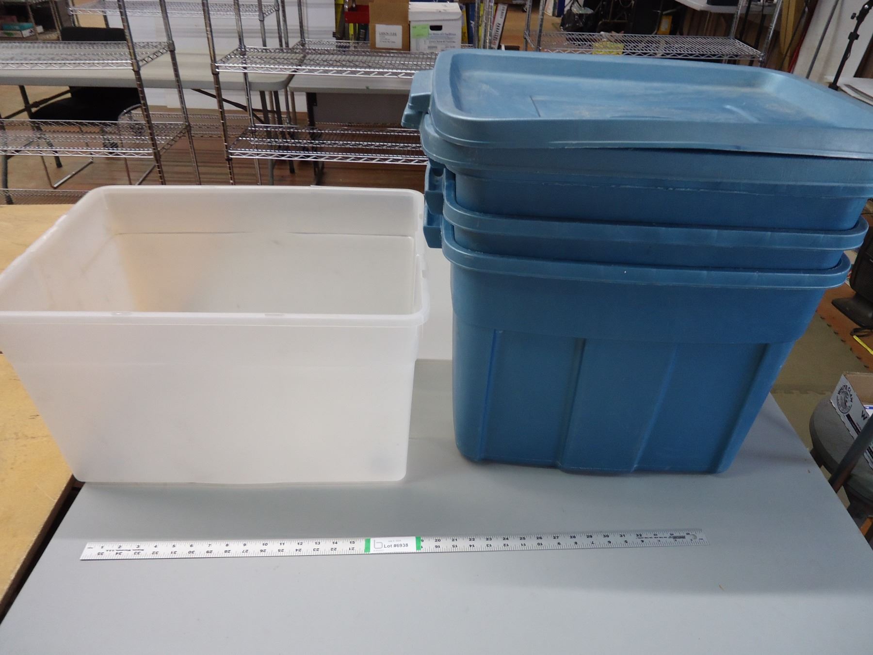 *(3) Rubbermaid Totes-61x40x41.9 (2 have lids) and 1 Clear Tote with Wheels