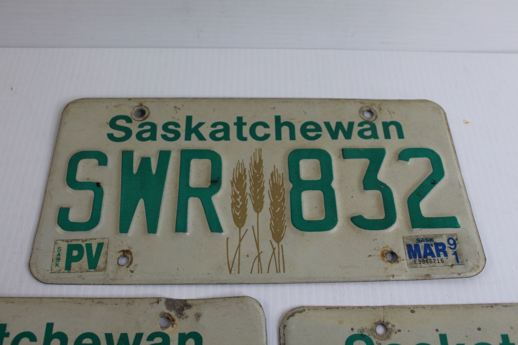 (3) Saskatchewan License Plates (1991, 1992), Pair of Saskatchewan 1993 License Plates