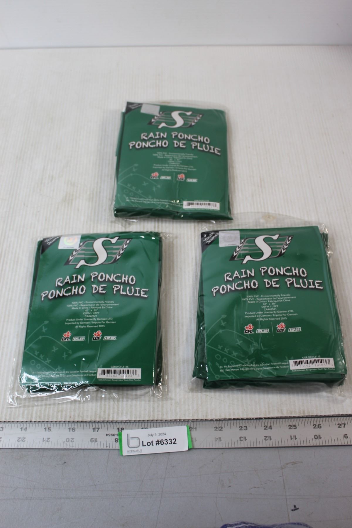 (3) Saskatchewan Roughrider Rain Ponchos - Youth