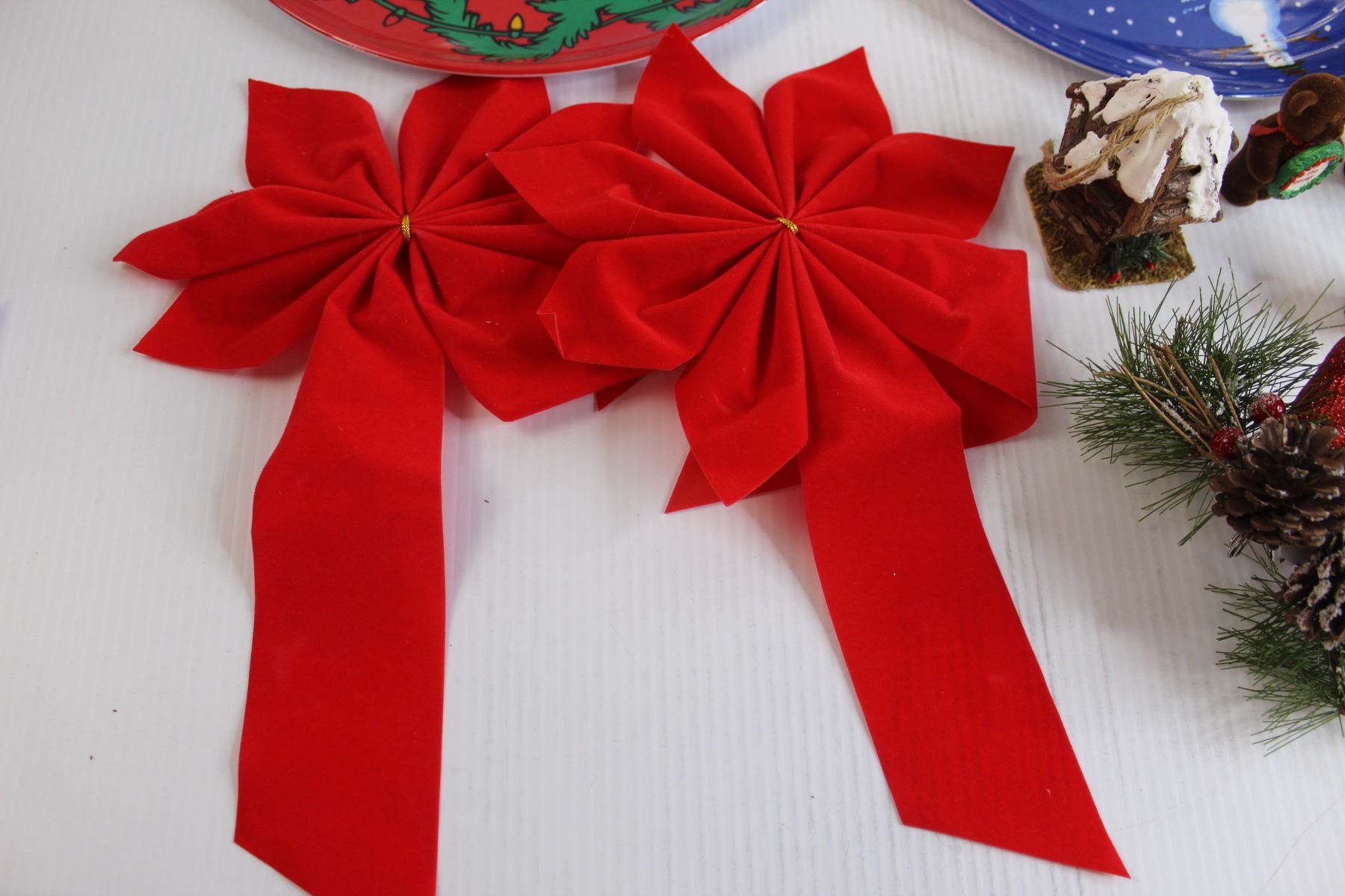 (3) Serving Platters - (1) is Bugs Bunny, (2) Red Door Ribbons, (20+) Assorted Christmas Ornaments