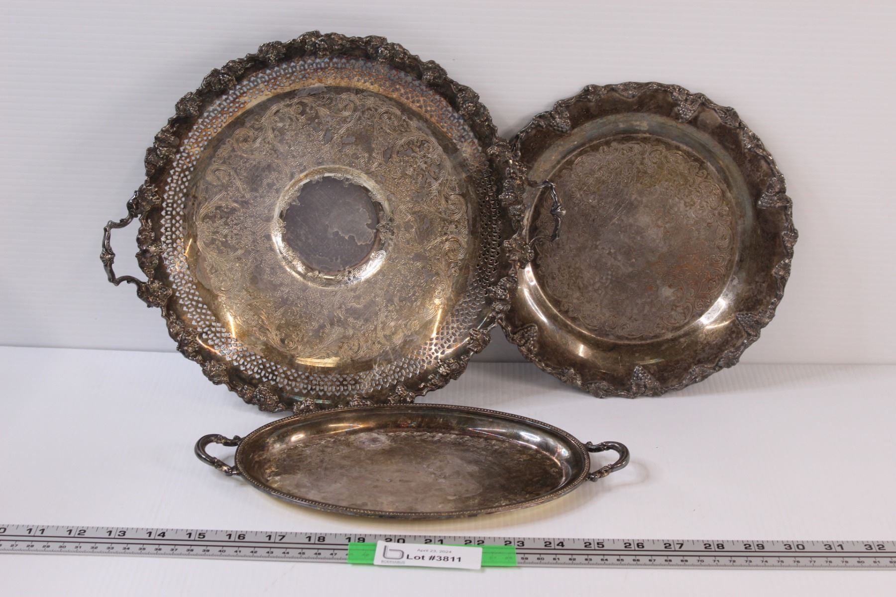 (3) Silver Plate Platters Misc. Sizes: Large is Silver Plate on Copper