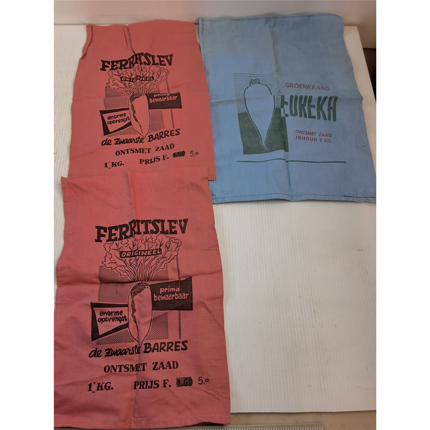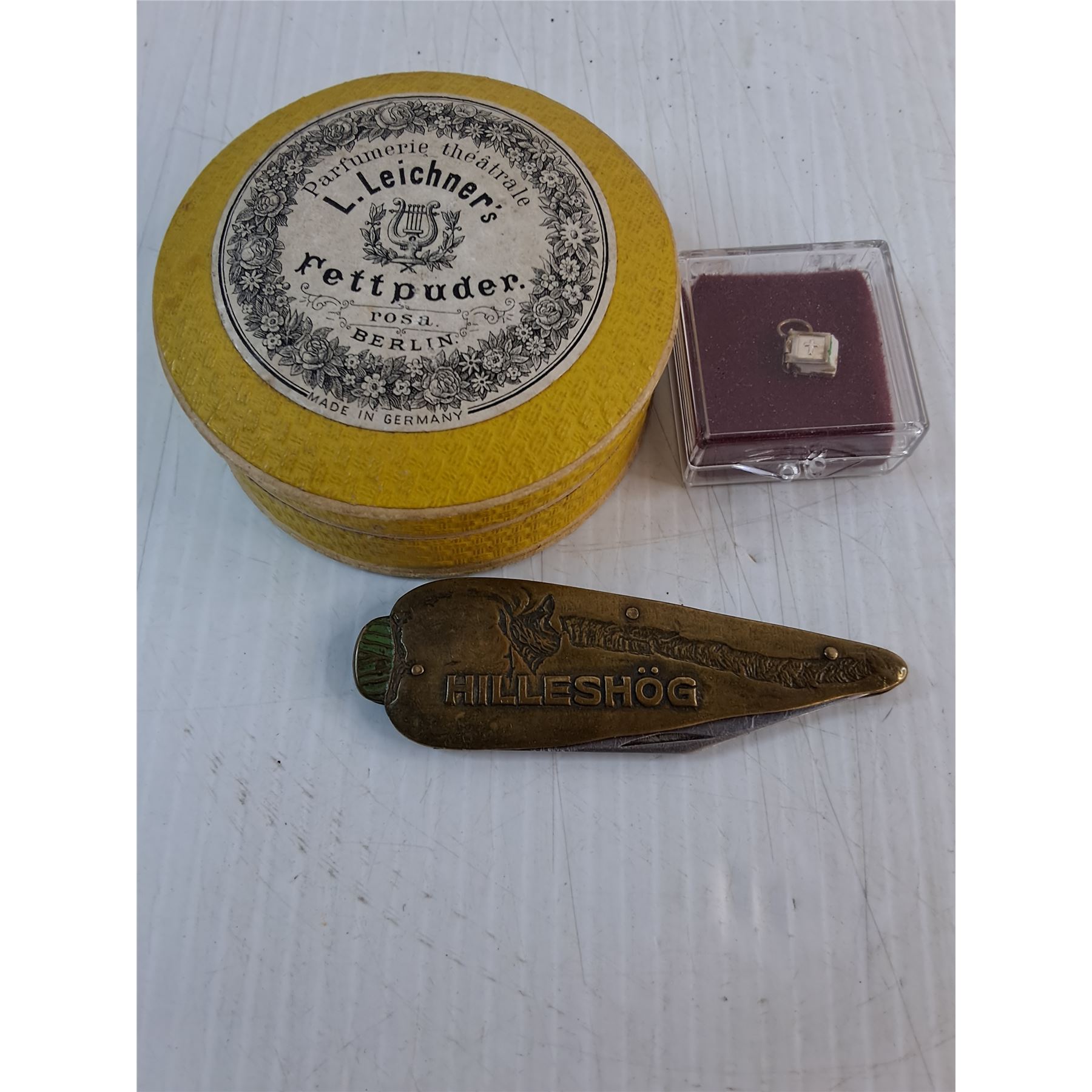 (3) Small Burlap Sacks,Pocket Knife,Match Box,(2) Bandage Tins,Bulb,Charm and Makeup Powder Tin