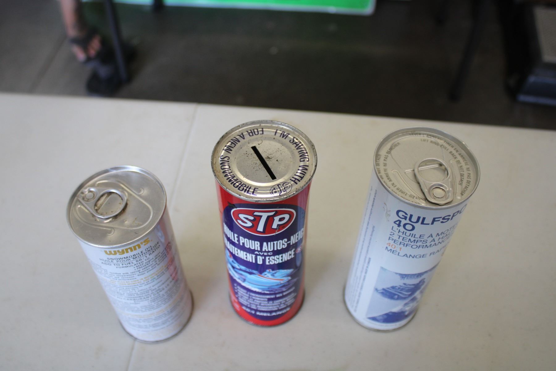 (3) Snowmobile oil cans