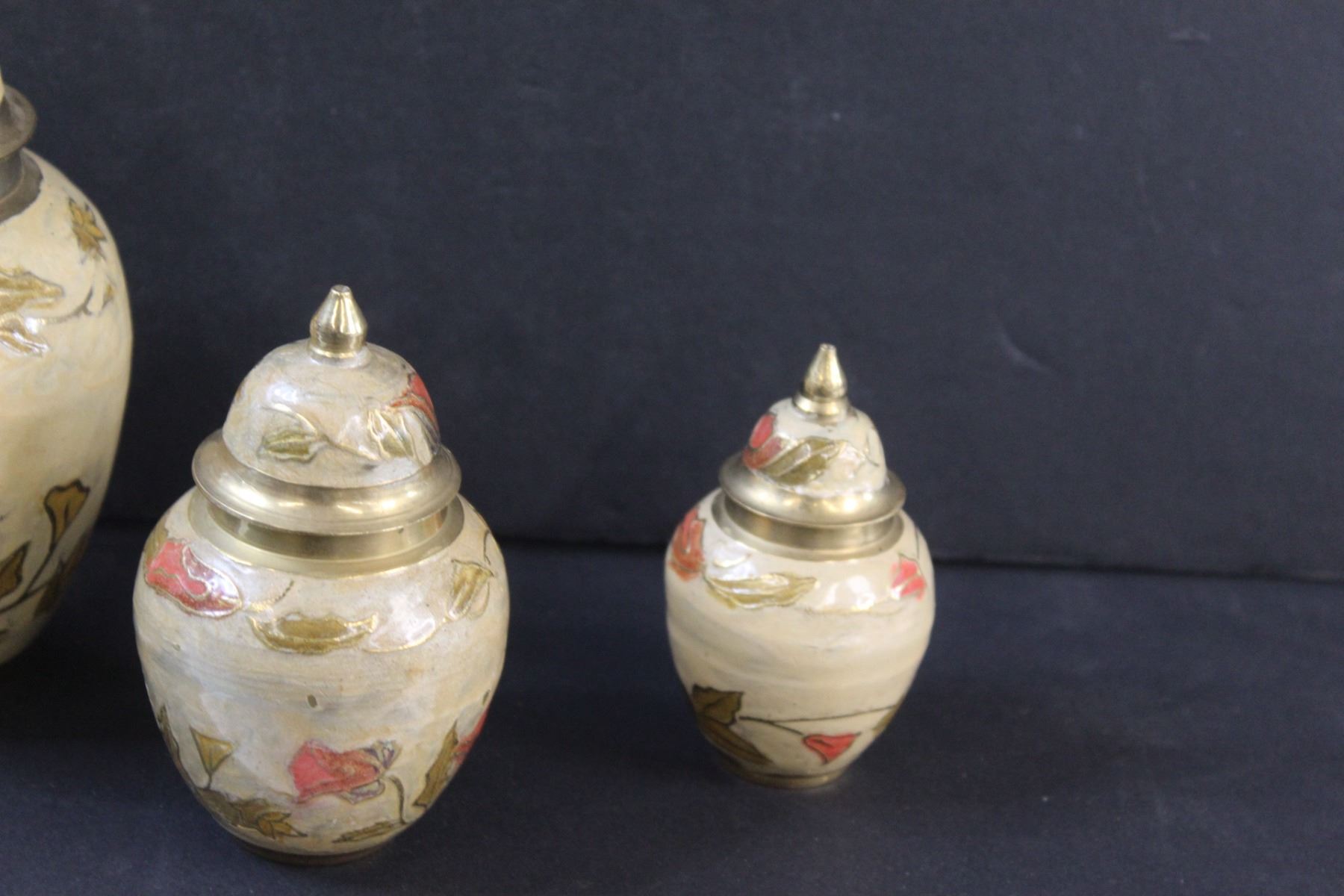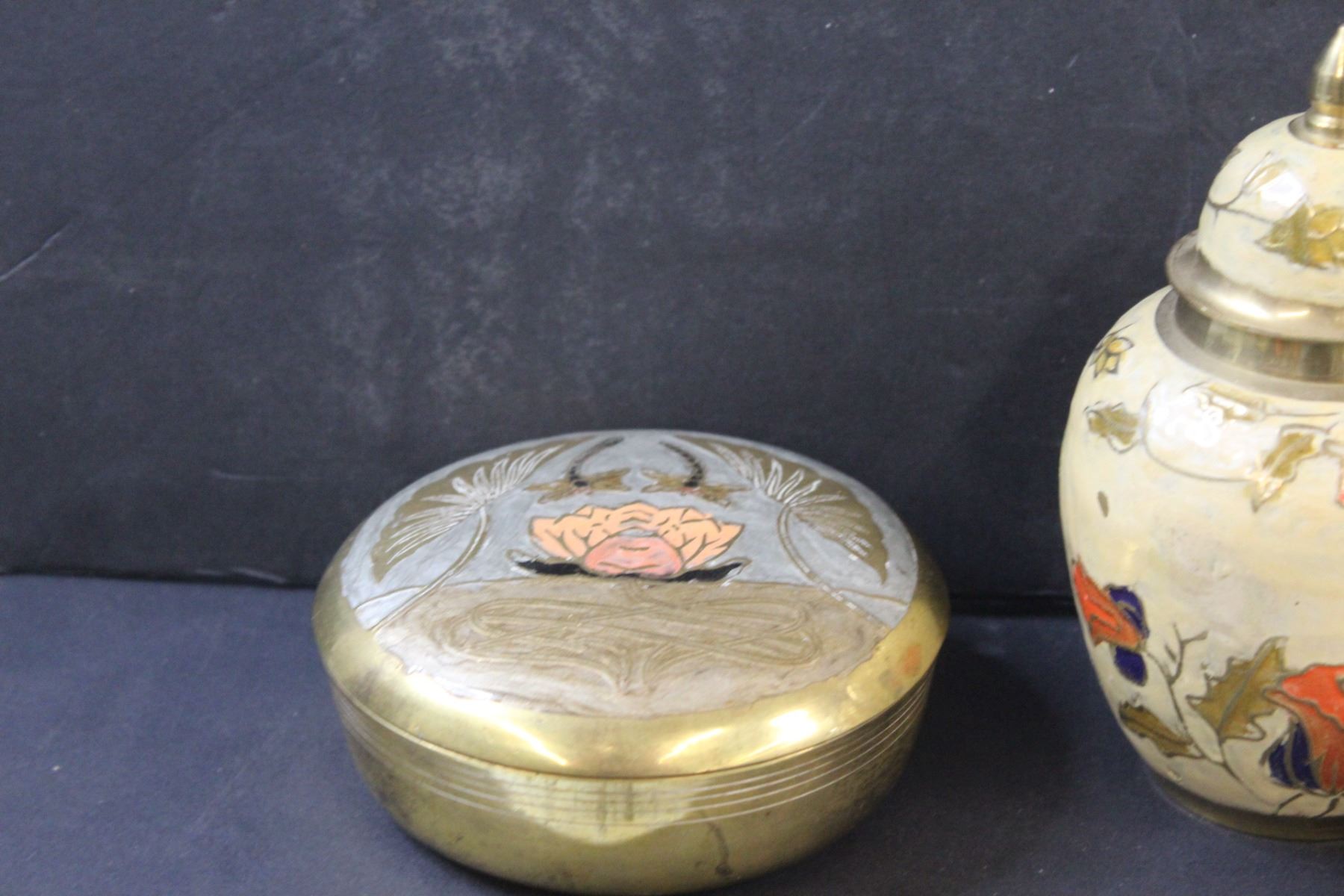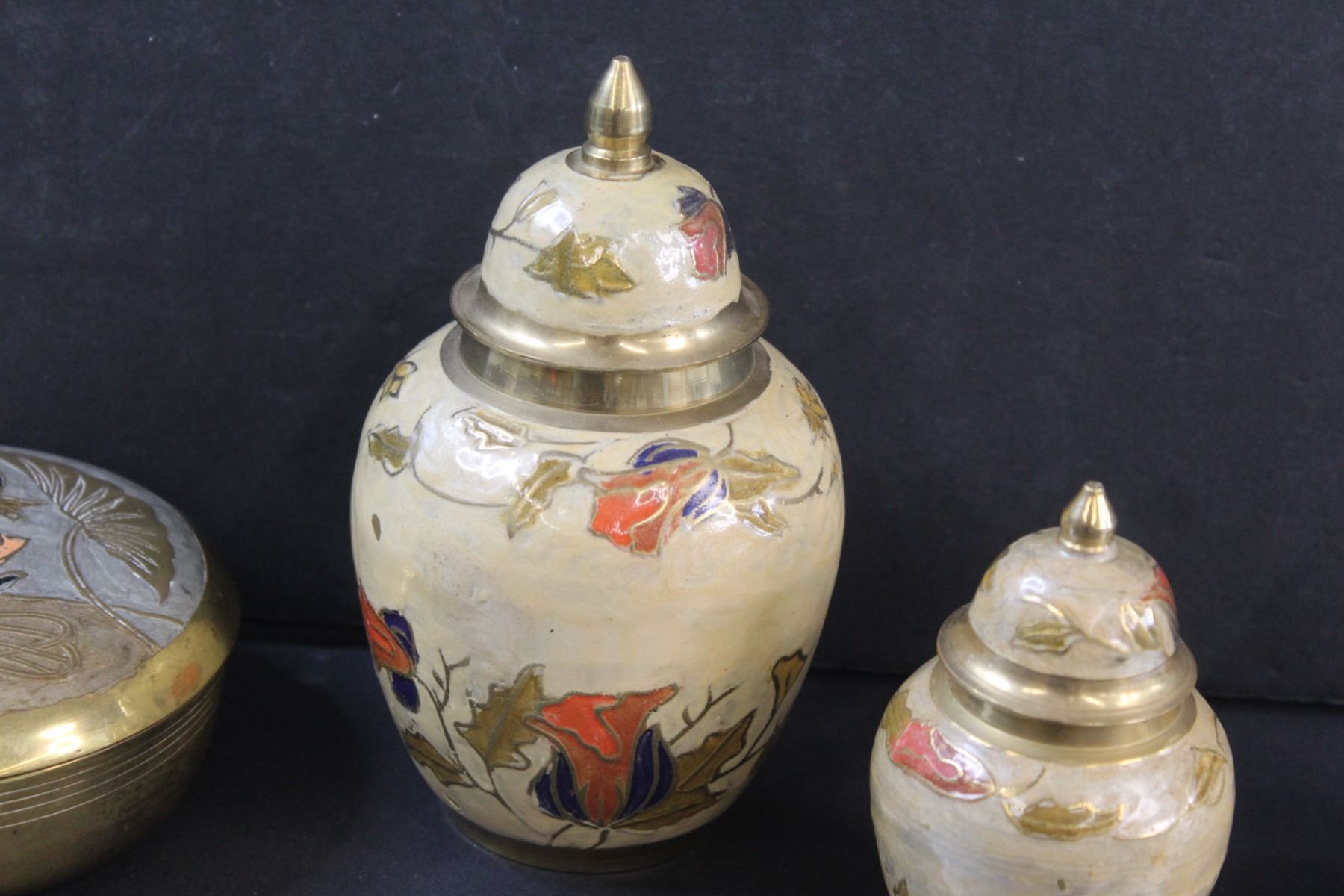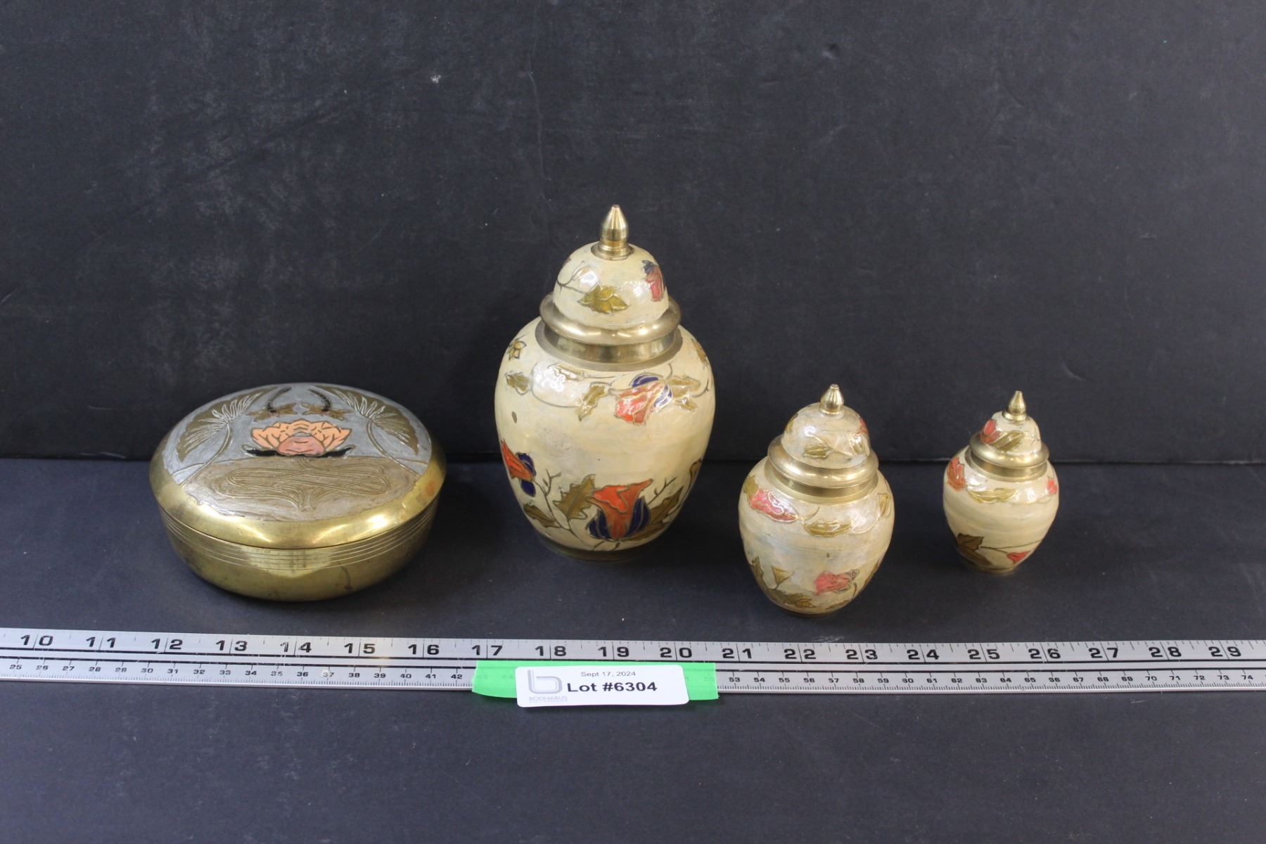 (3) Solid Brass Vase/Urn (6" & 4" & 3") & Brass Jewelry Box (5" Diameter)