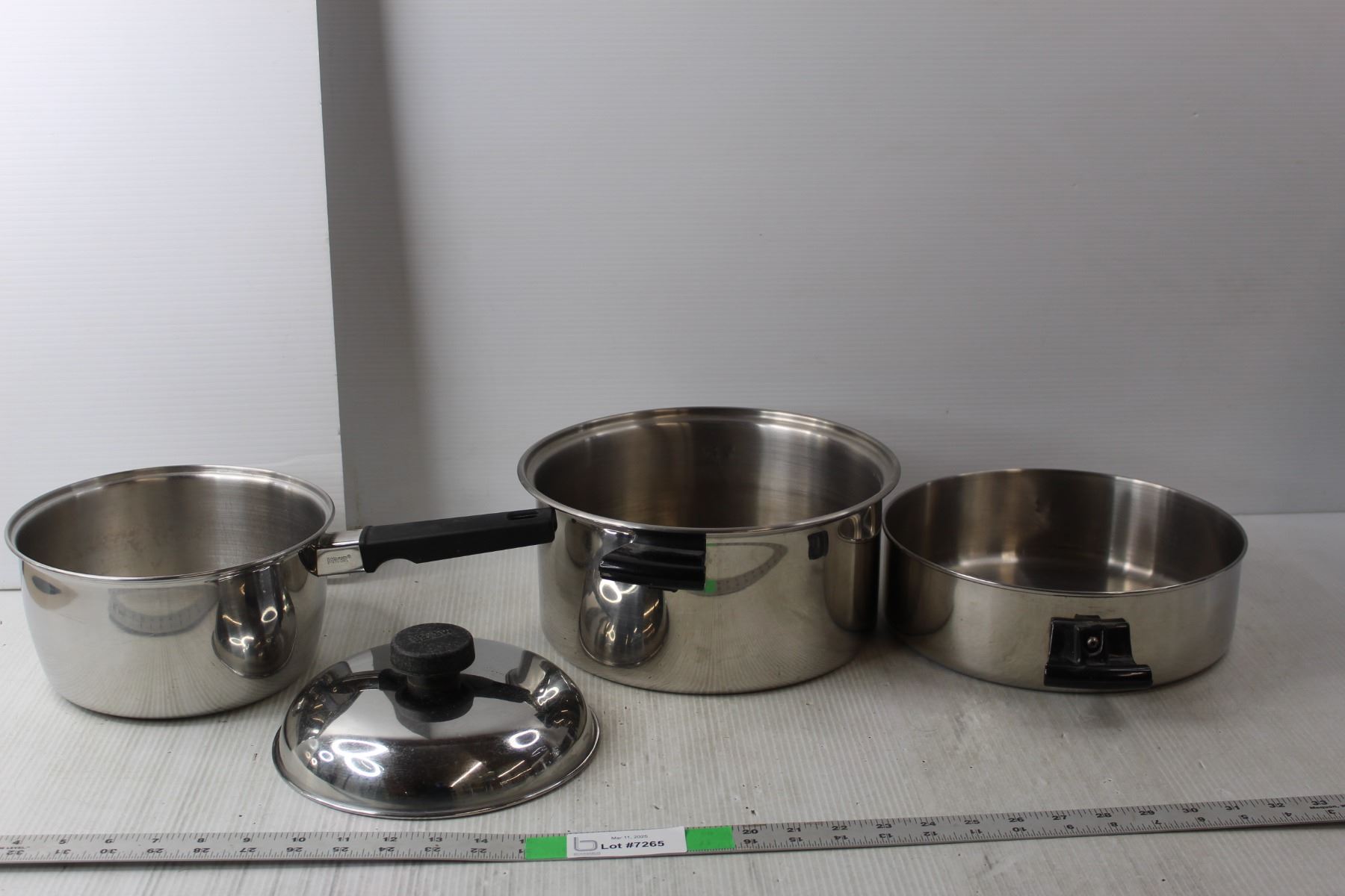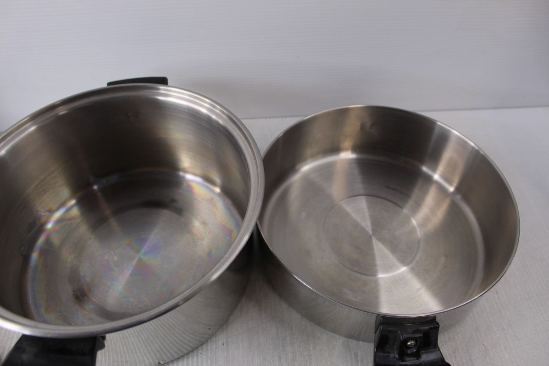 (3) Stainless Steel Pots Up to 10.5" Wide/5" Tall, One Lid