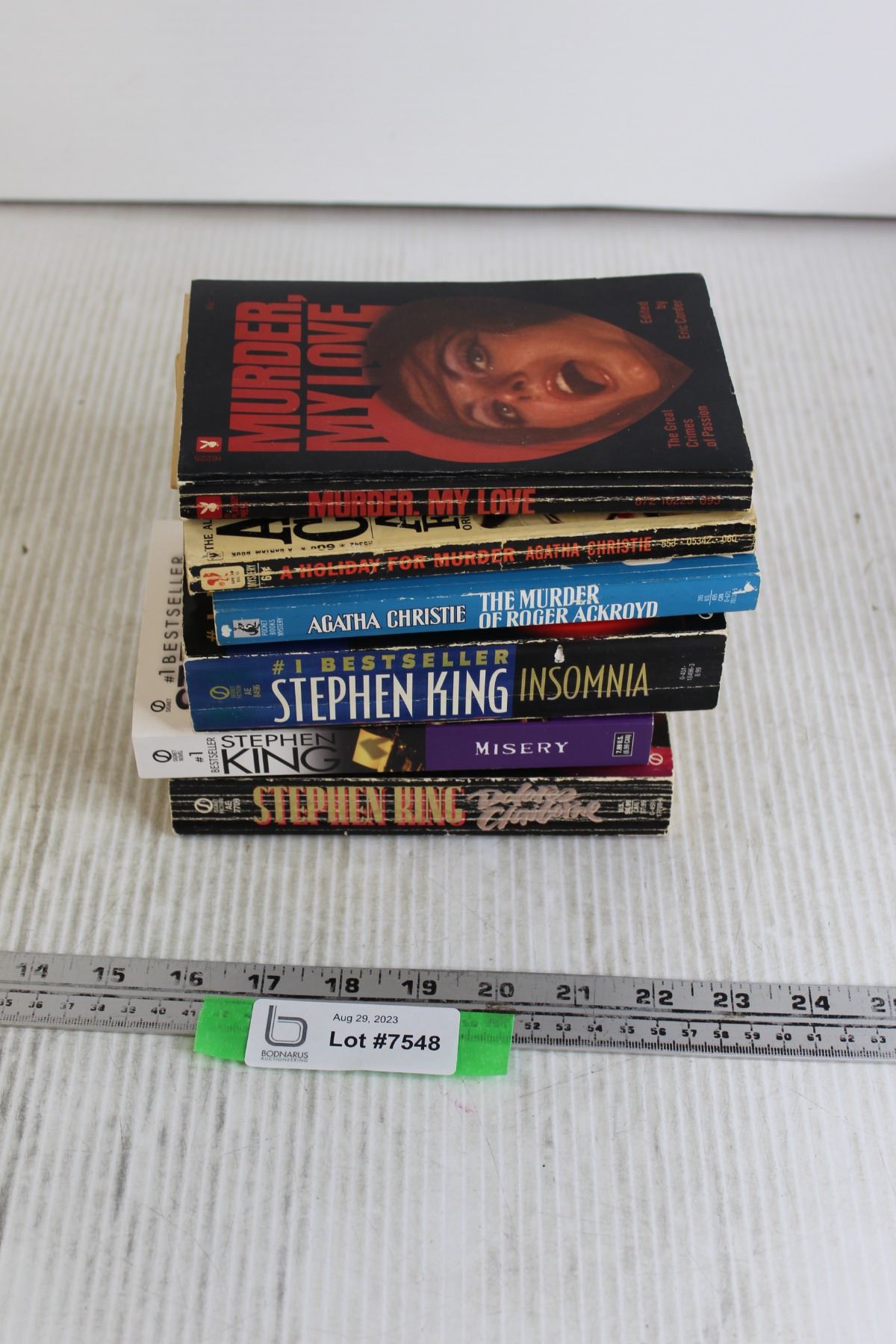 (3) Stephen King Books, (2) Agatha Christie Books, Eric Clapton Book - Murder, My Love; A Holiday for Murder, Insomnia