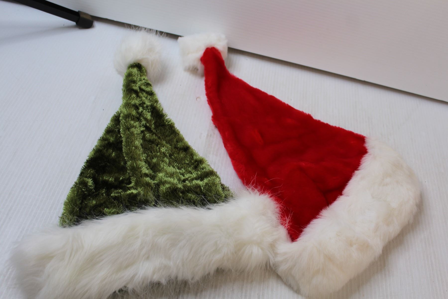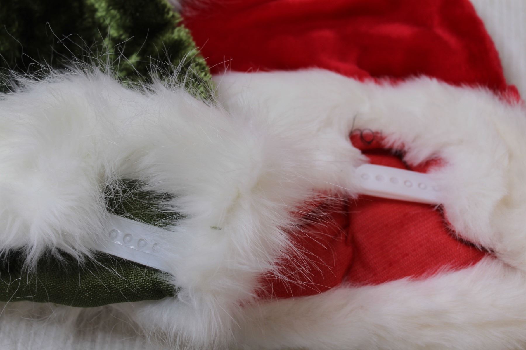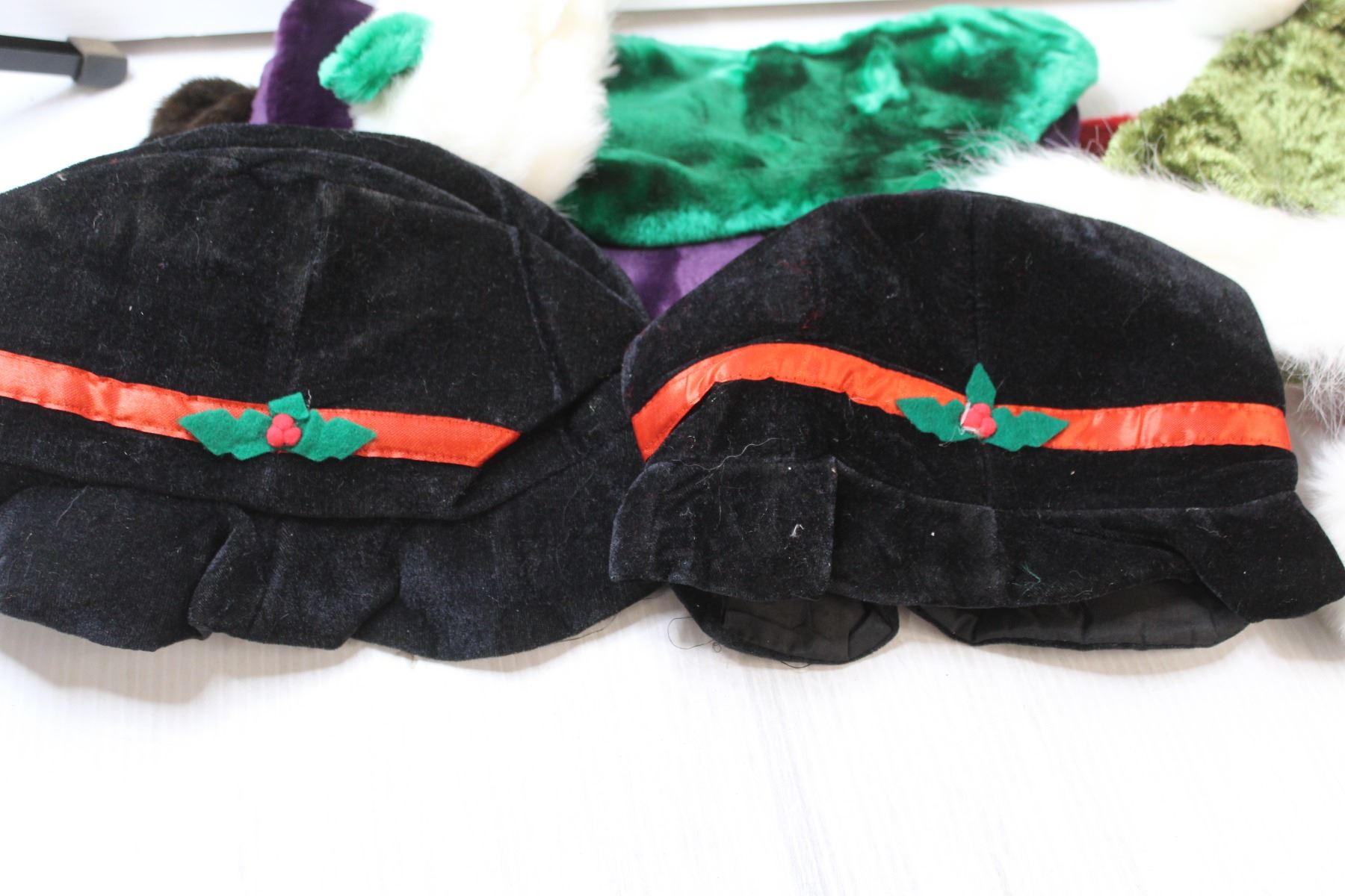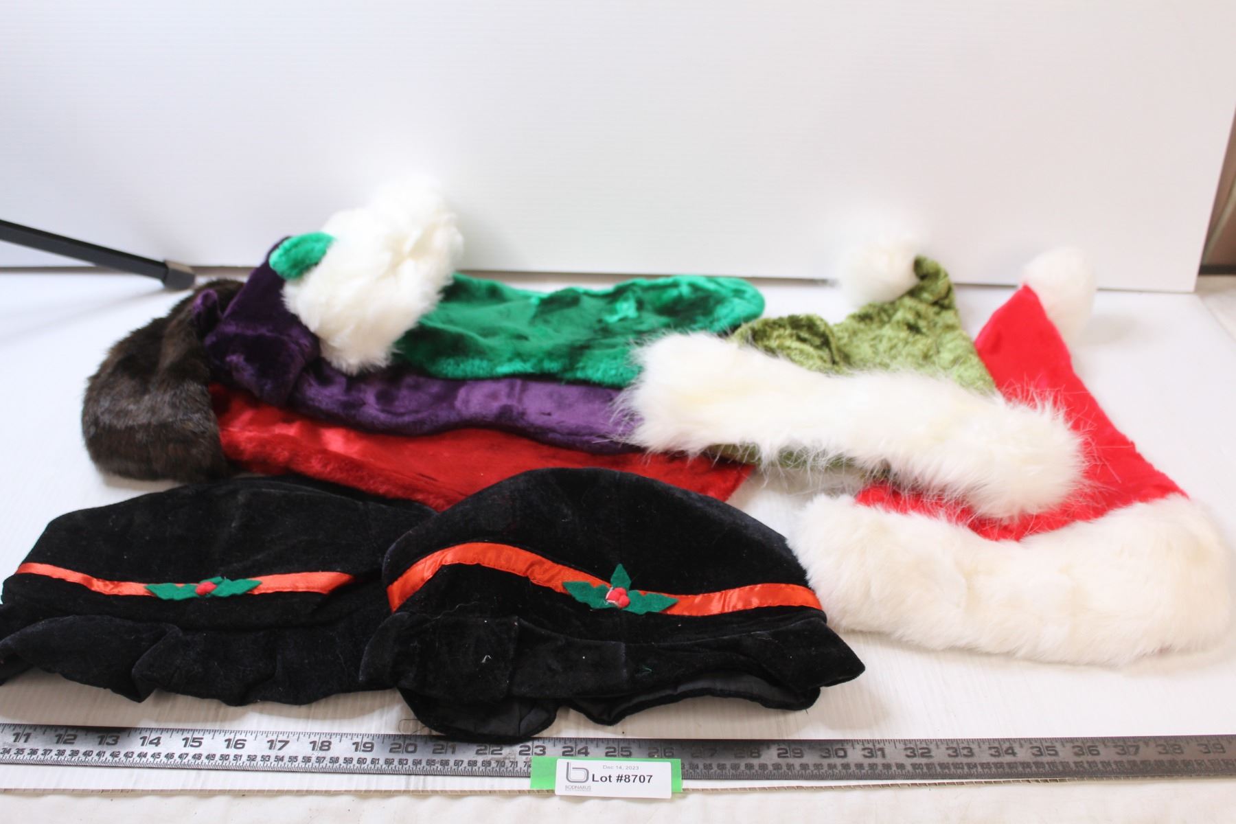 (3) Stockings, (2) Santa Hats, (2) Mrs. Claus Hats