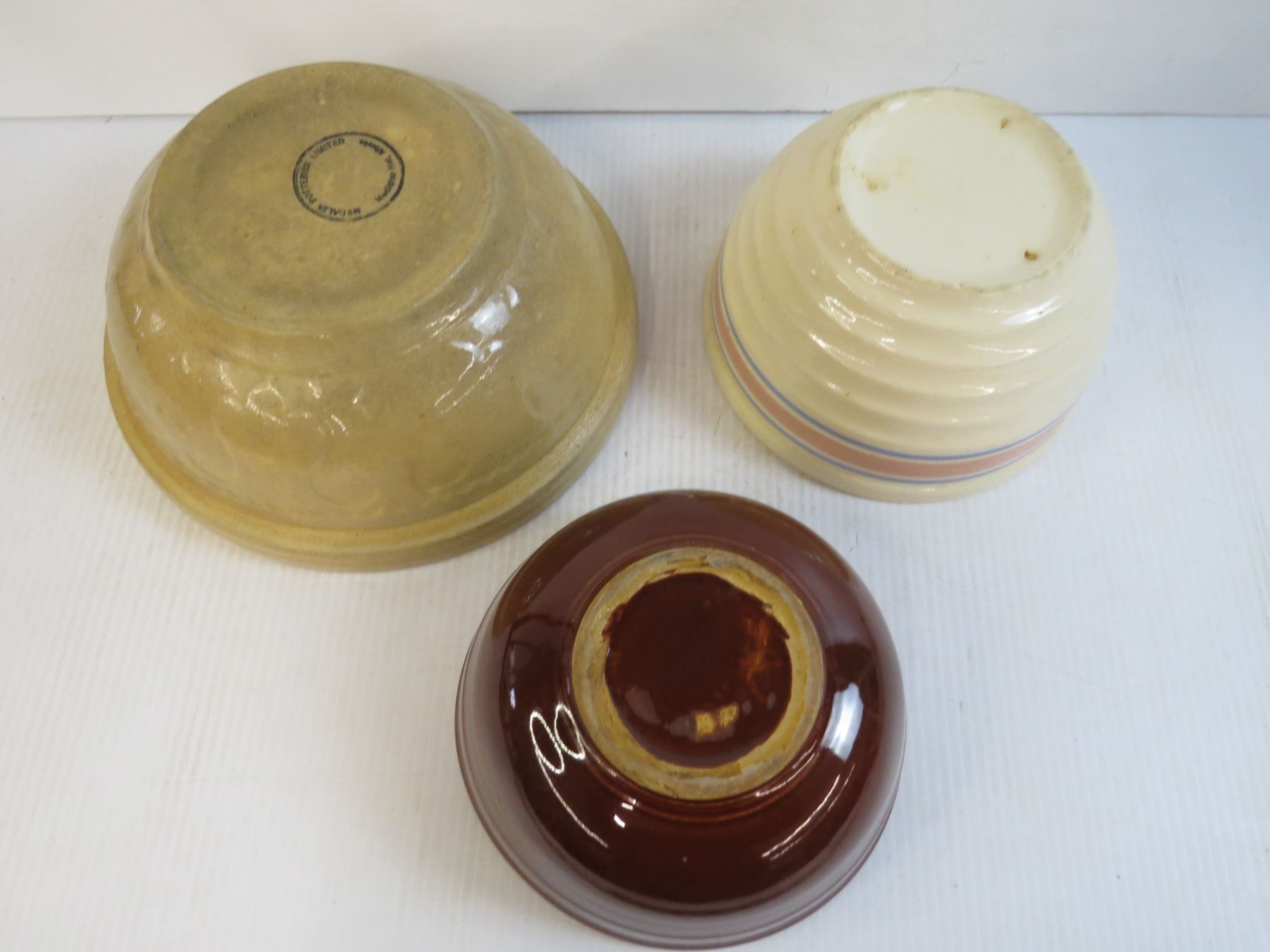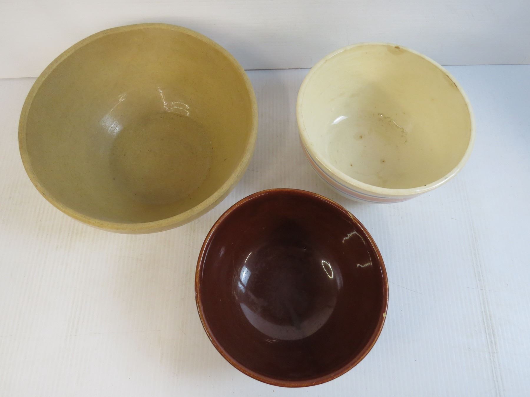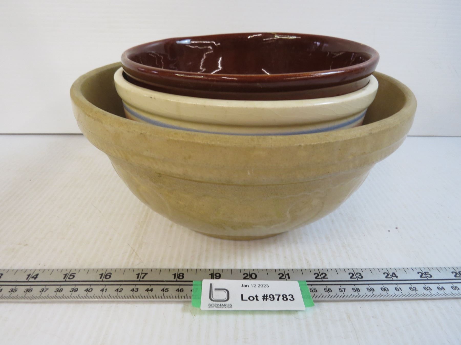 (3) Stoneware Bowls (slight chipping - Lg one is Medalta)