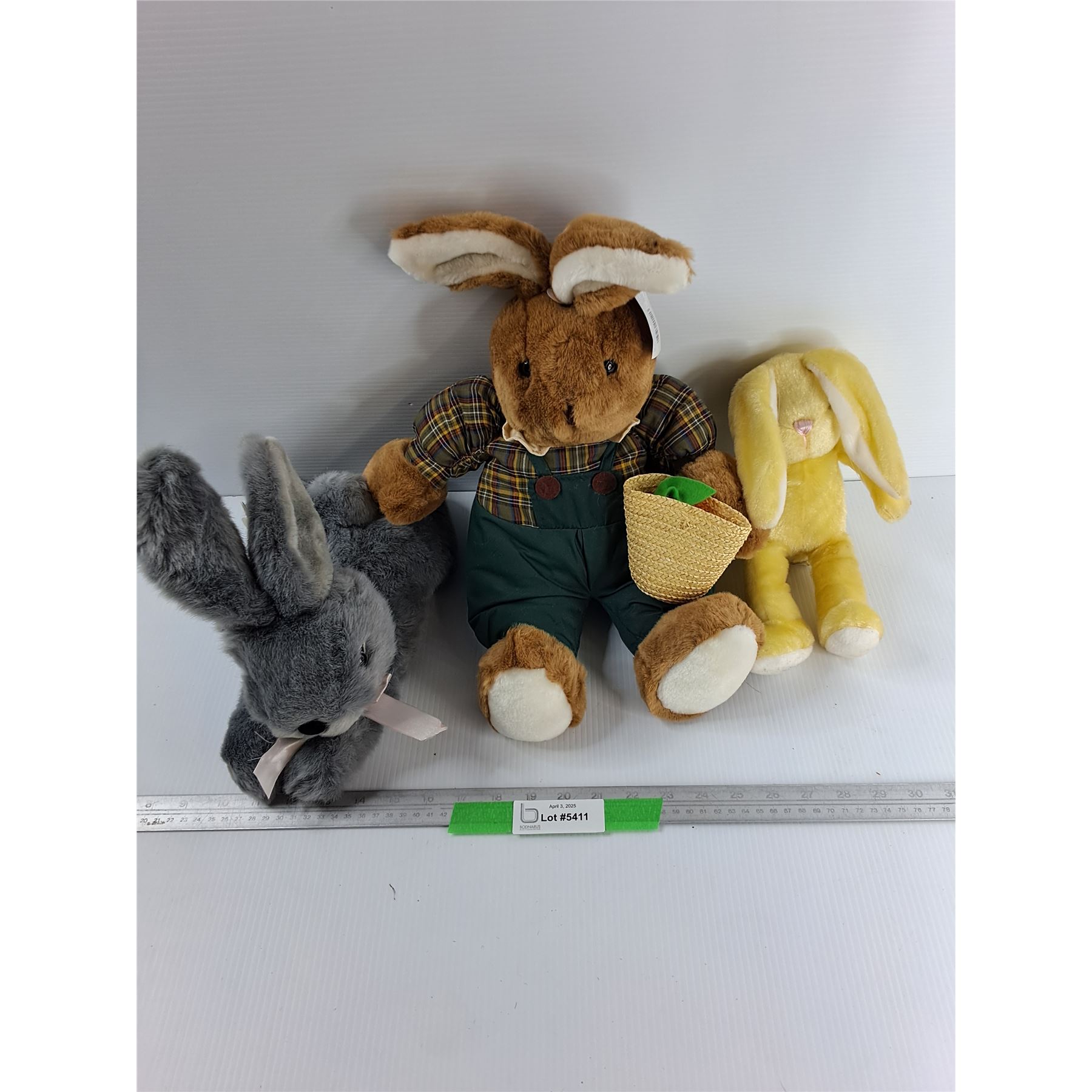 (3) Stuffed Easter Bunnies, Tallest Is 11" Tall