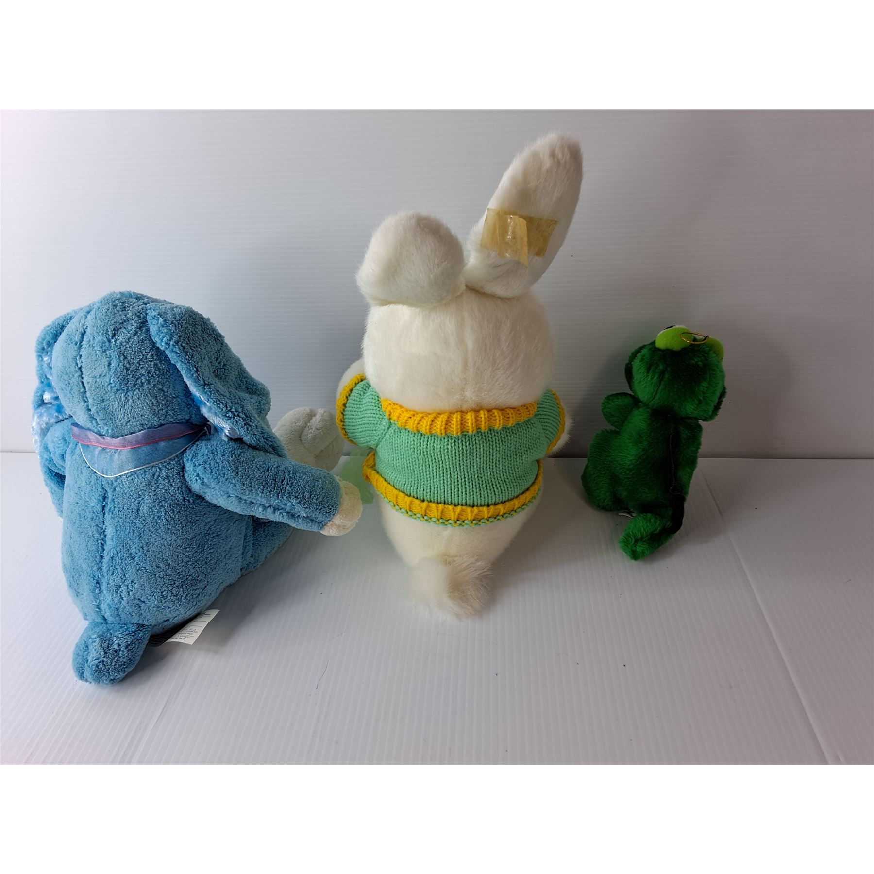 (3) Stuffies- Bunnies, Alligator Up to 15" Long