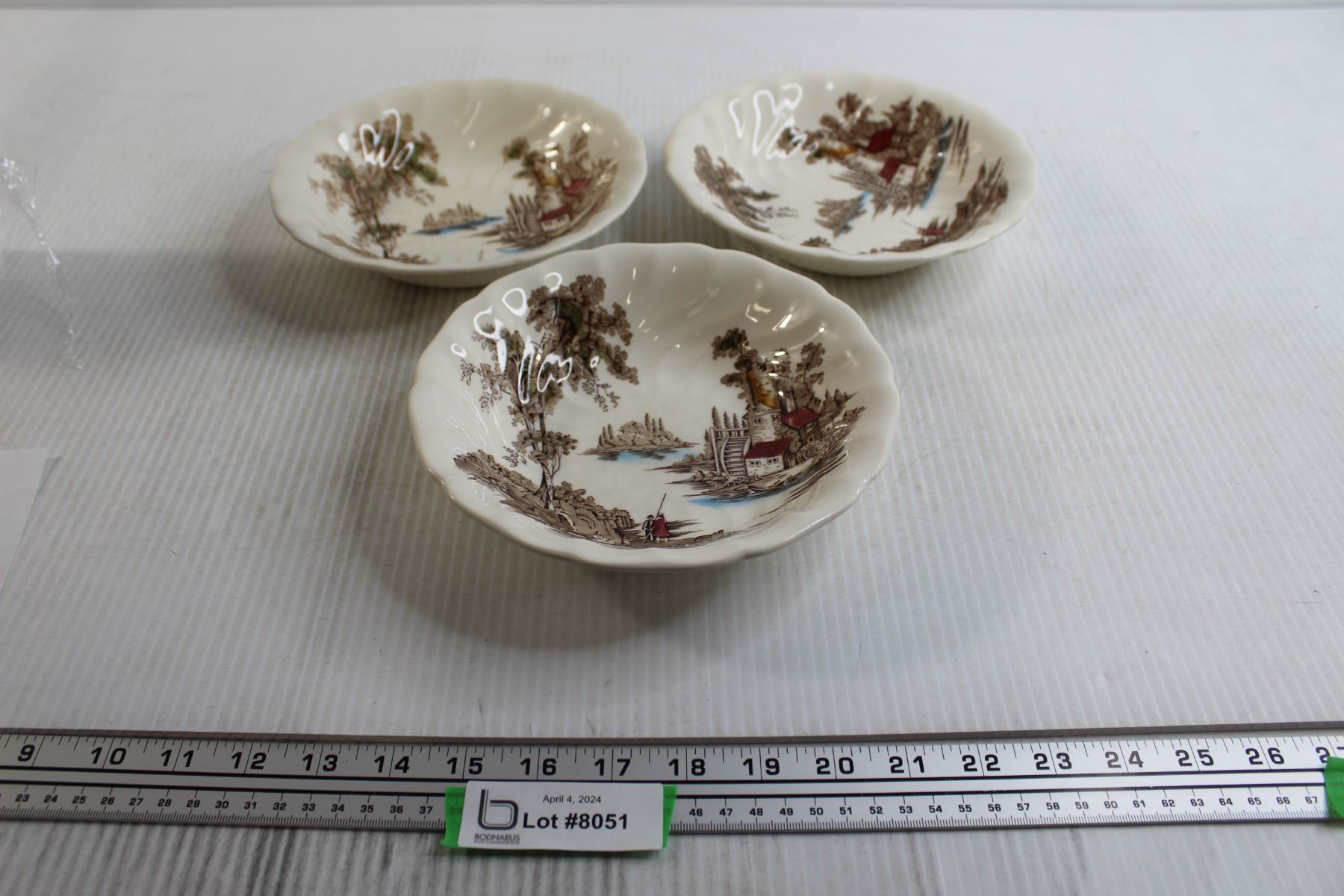 (3) The Johnson Bros The Old Mill Dishes - Made in England, 7 3/4"