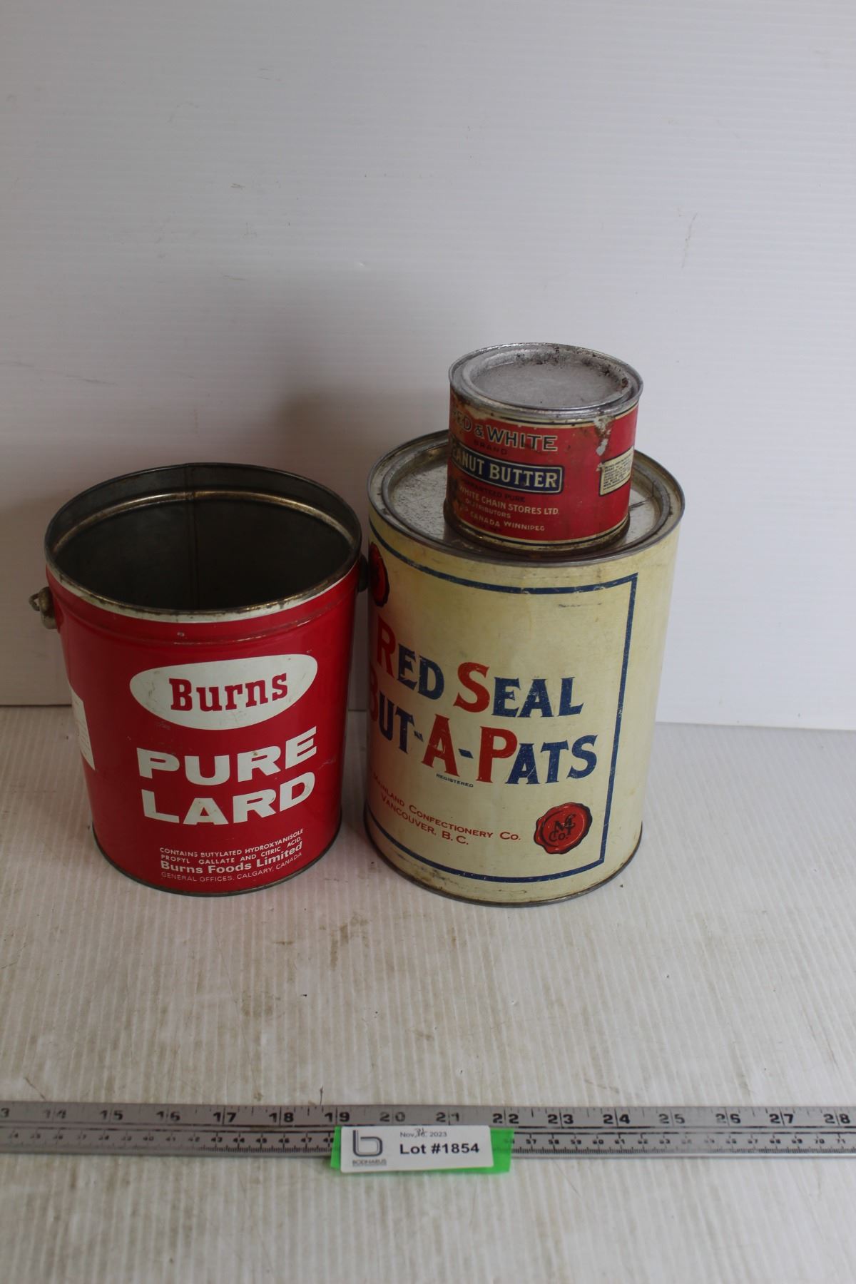 (3) Tins - Red & White Brand Peanut Butter, Red Seal But-A-Parts, Burns Pure Lard